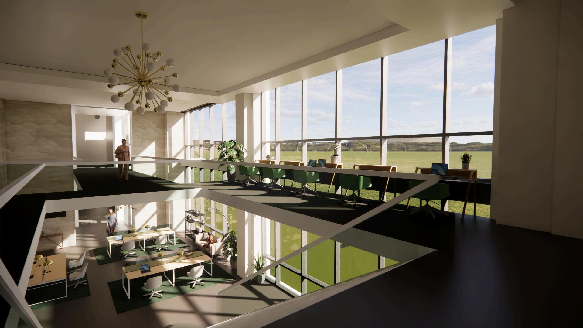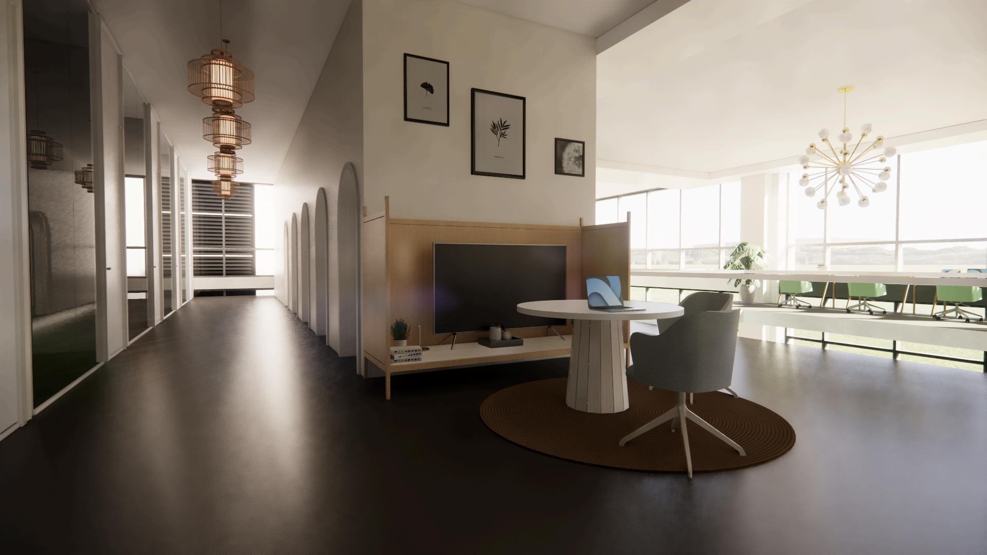 Inspired by the nurturing essence of Mother Earth, our office design concept is centered around fostering a welcoming and harmonious workspace Drawing from the earth's palette, we incorporate warm, grounding tones reminiscent of natural elements to create a serene and inviting atmosphere. Through thoughtfully selected fixtures and furnishings that reflect the organic textures and fluid forms found in nature, we aim to cultivate a space that promotes productivity, creativity, and well-being, allowing employees to thrive in a tranquil yet dynamic environment.