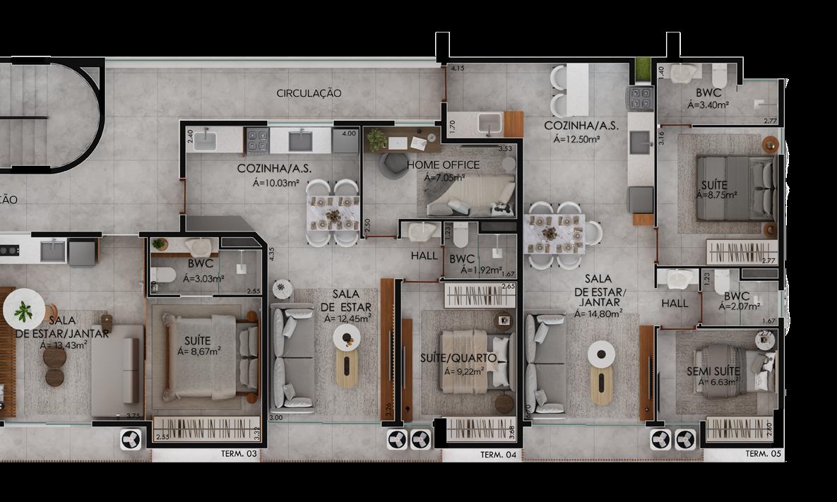 Espaços amplos, integração fluida e acabamentos sofisticados para quem valoriza conforto e exclusividade.