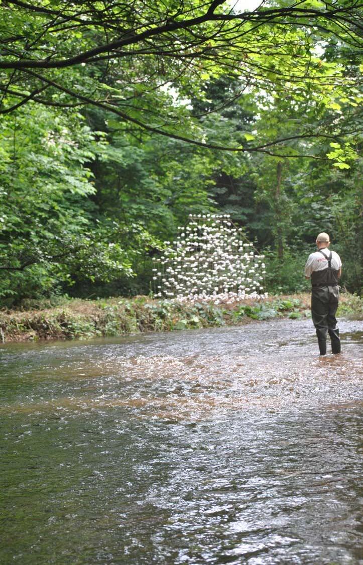Parmi les pierres qui jalonnent la rivière du Renaison, se trouve une structure qui semble être en ruine : en y regardant de plus près, on peut voir des pierres flotter.
