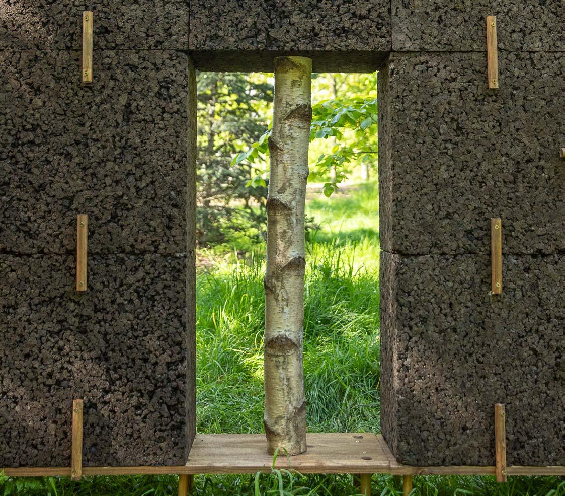 Blocs de liège, manches à balais réemployés, laiton, troncs de bouleaux, acier
