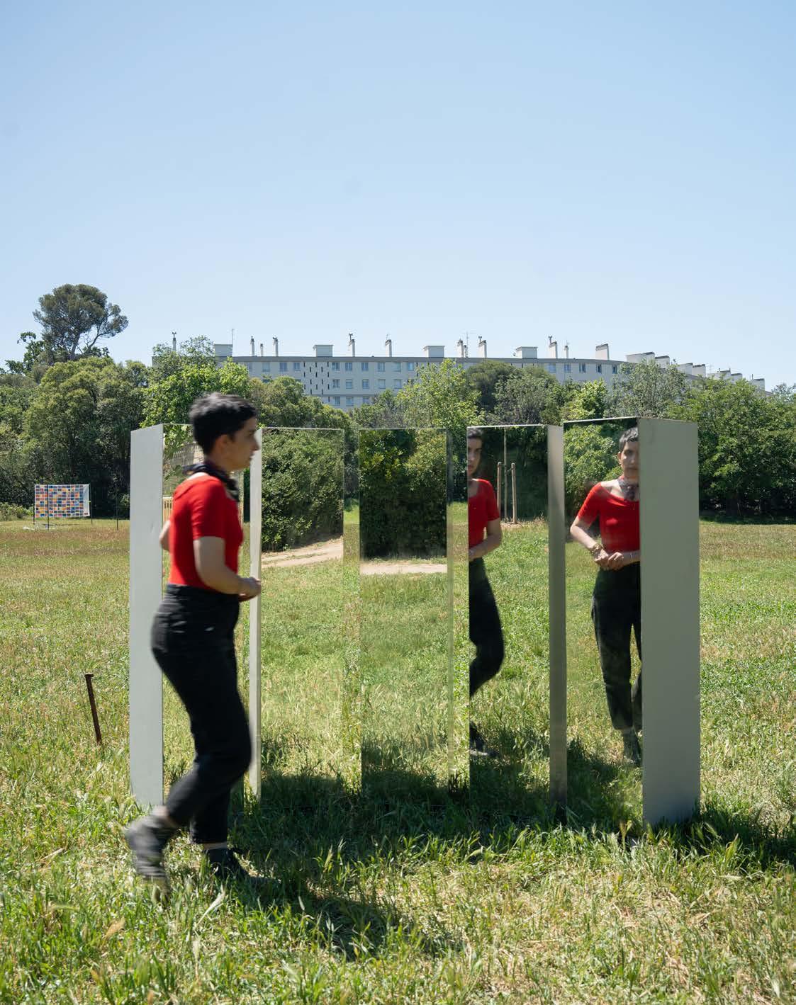 Les miroirs dans les vestiaires sont des alliés clés de cette transformation. En confrontant le spectateur à ses multiples facettes, ils incarnent une transformation géométrique où le corps, l'anatomie et le mouvement créent une chorégraphie visuelle.