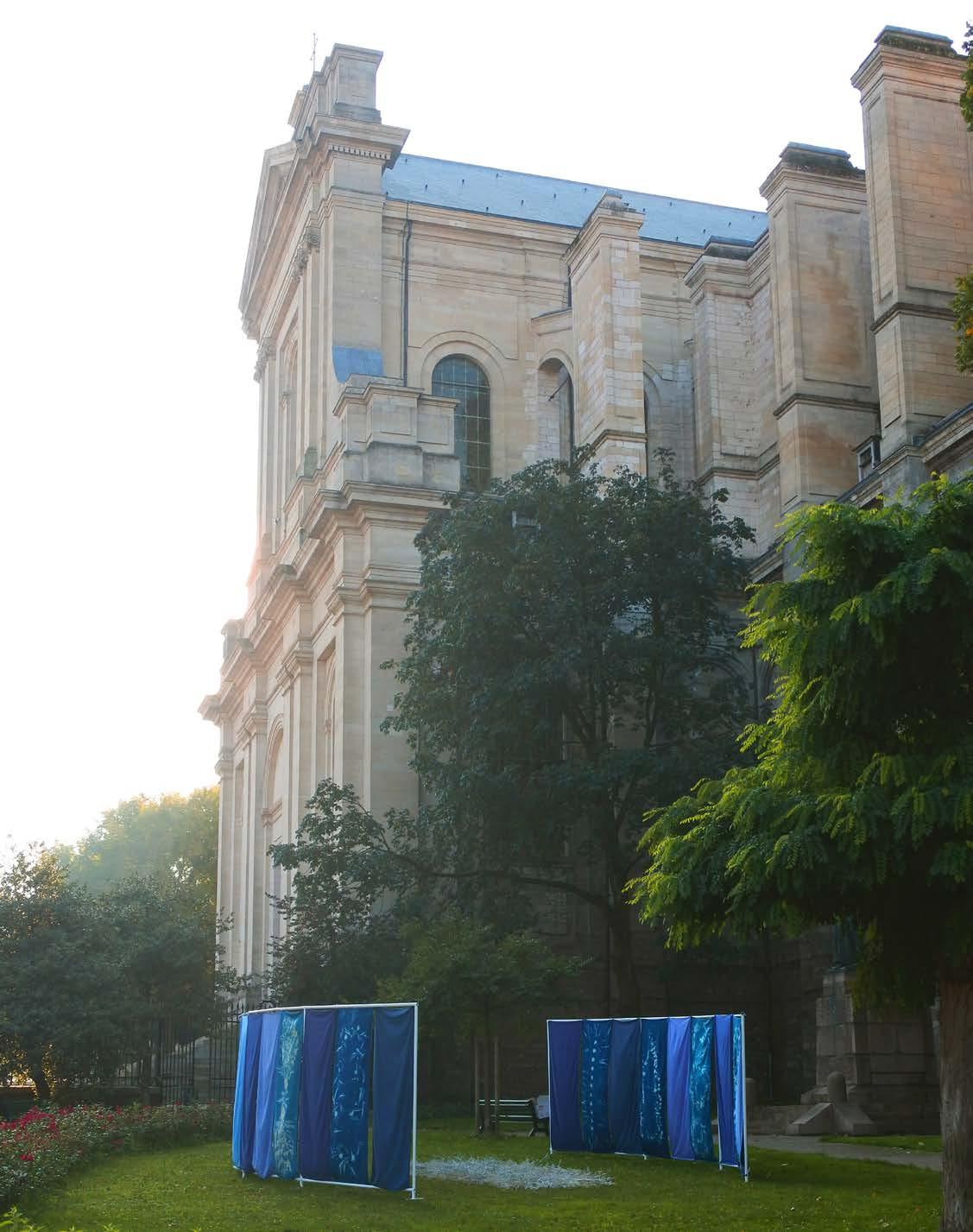 L'idée de représenter le négatif de motifs floraux en utilisant la couleur bleue s'est imposée naturellement grâce à la technique du cyanotype. Cette technique permet de révéler, grâce à la lumière du soleil, des empreintes blanches de fleurs sur un fond bleu.