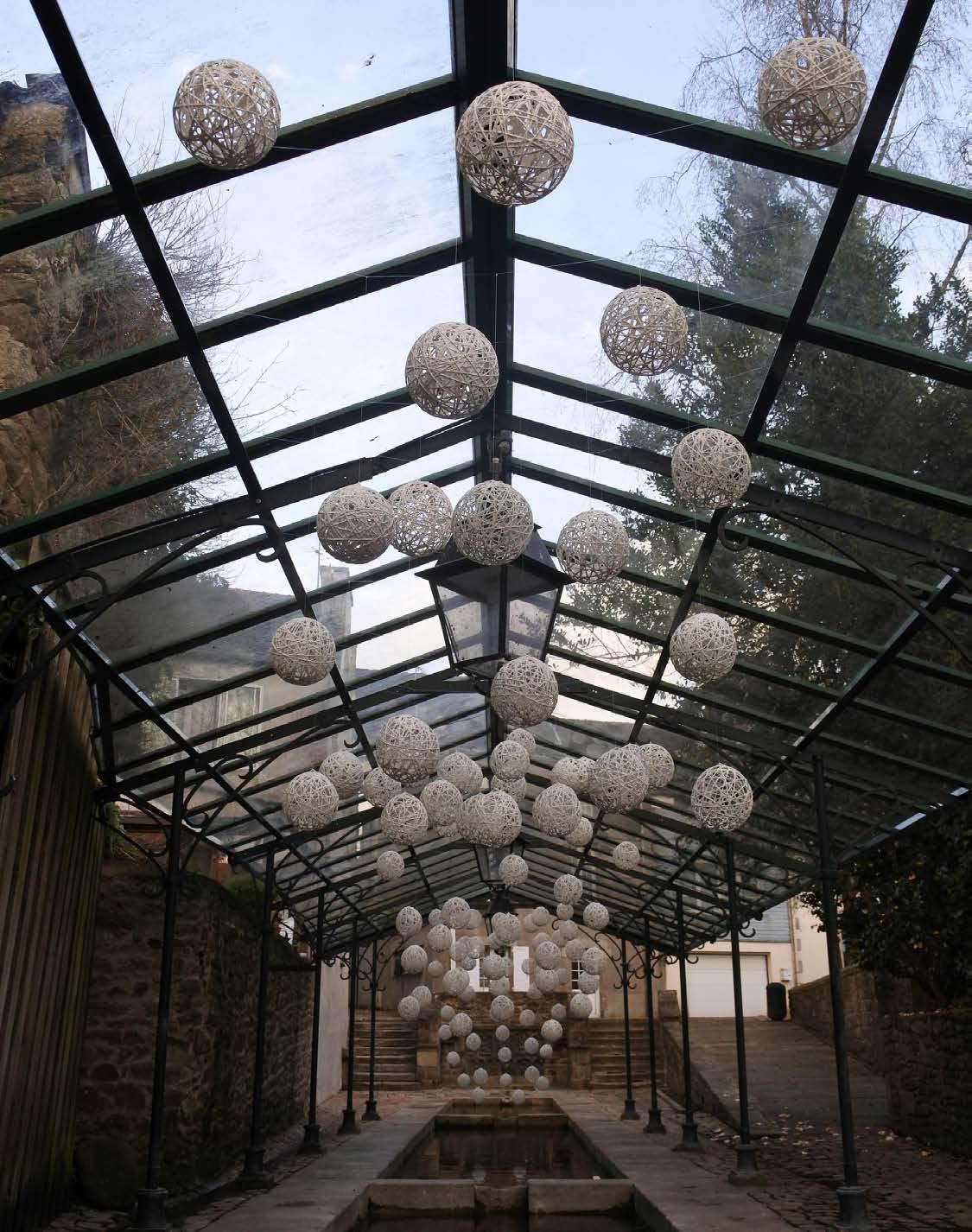 Lavomatique est un hommage à l'histoire pas si lointaine de la fontaine Saint Thivisiau, sous la forme d'un clin d'œil ludique et plastique pour le visiteur. Autrefois, l'eau de ces bassins s'agitait sous les efforts des lavandières, transformant la fontaine en un espace animé. L'eau savonneuse libérait sans doute des bulles qui s'élevaient au-dessus du linge, légères et éphémères. Le placement de sphères en laine blanche suspendues au-dessus des trois bassins principaux de la fontaine évoque les coutumes d'une époque révolue.