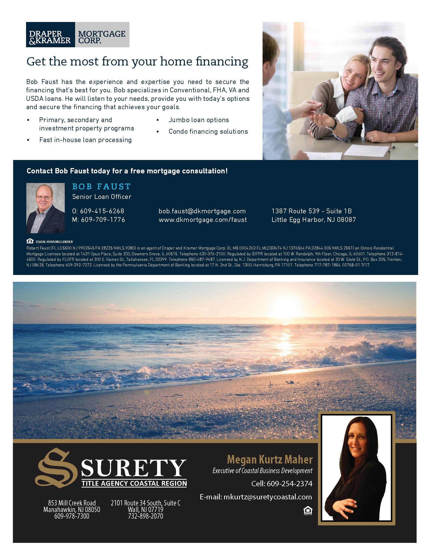mortgage preapproval Home shopping MAKE OFFER NEGOTIATIONS CONTRACT ATTORNEY REVIEW MORTGAGE APPLICATION HOME INSPECTION APPRAISAL UNDERWRITING FIND A TITLE COMPANY TITLE REPORT $ N ion Reach w h Loc Service OUR 5 DEDICATED BUSINESS UNITS Residential Commercial Foreclosure National AFBA Megan Kurtz Maher C: 609.254.2374 mkurtz@mysurety.com 853 Mill Creek Road, Manahawkin, NJ Office Number - 609.978.7300 256 W 9th Street, Suite C, Ship Bottom, NJ Office Number - 609.416.5612 | NMLS #9380 | Company NMLS #2551