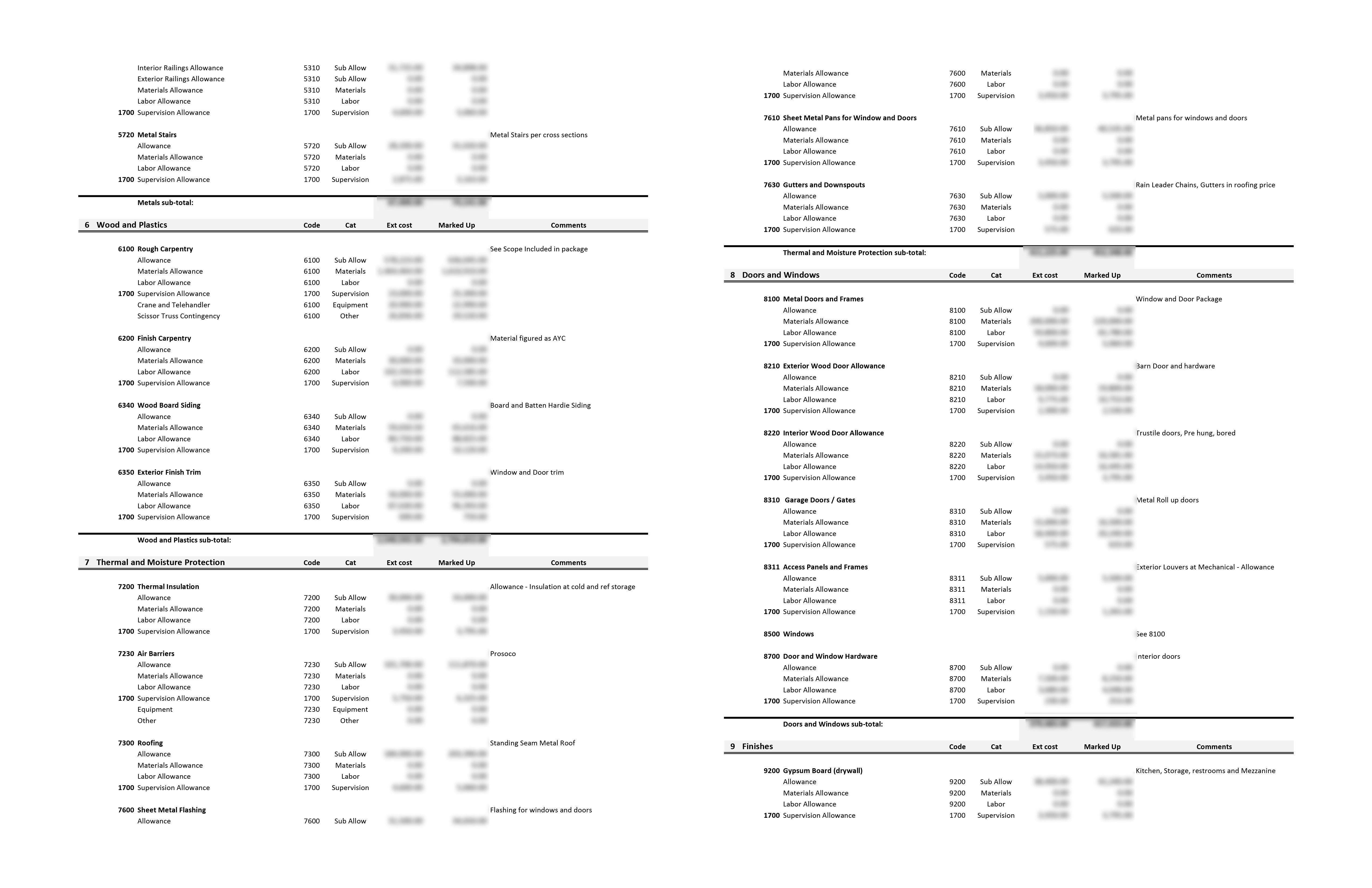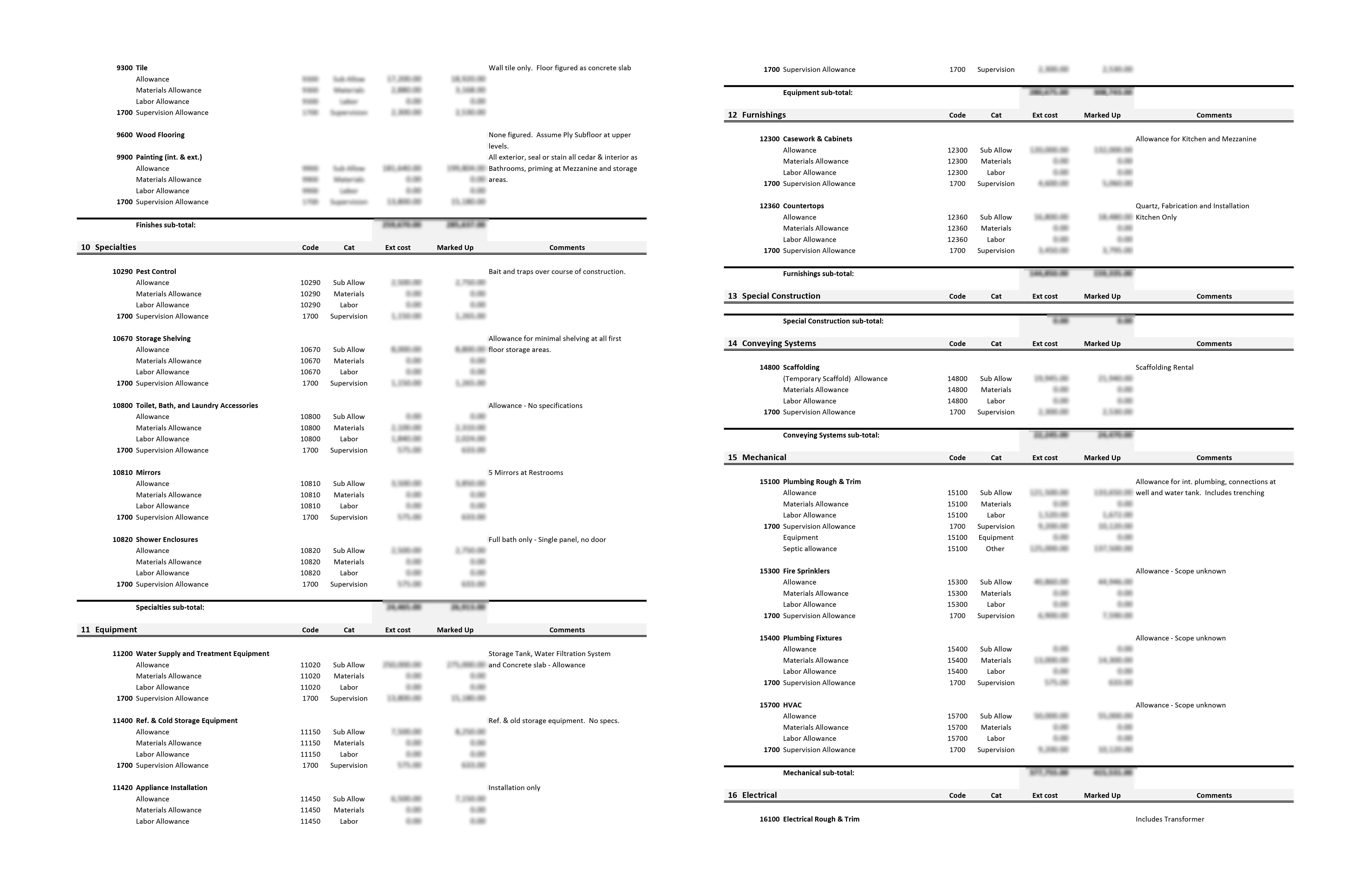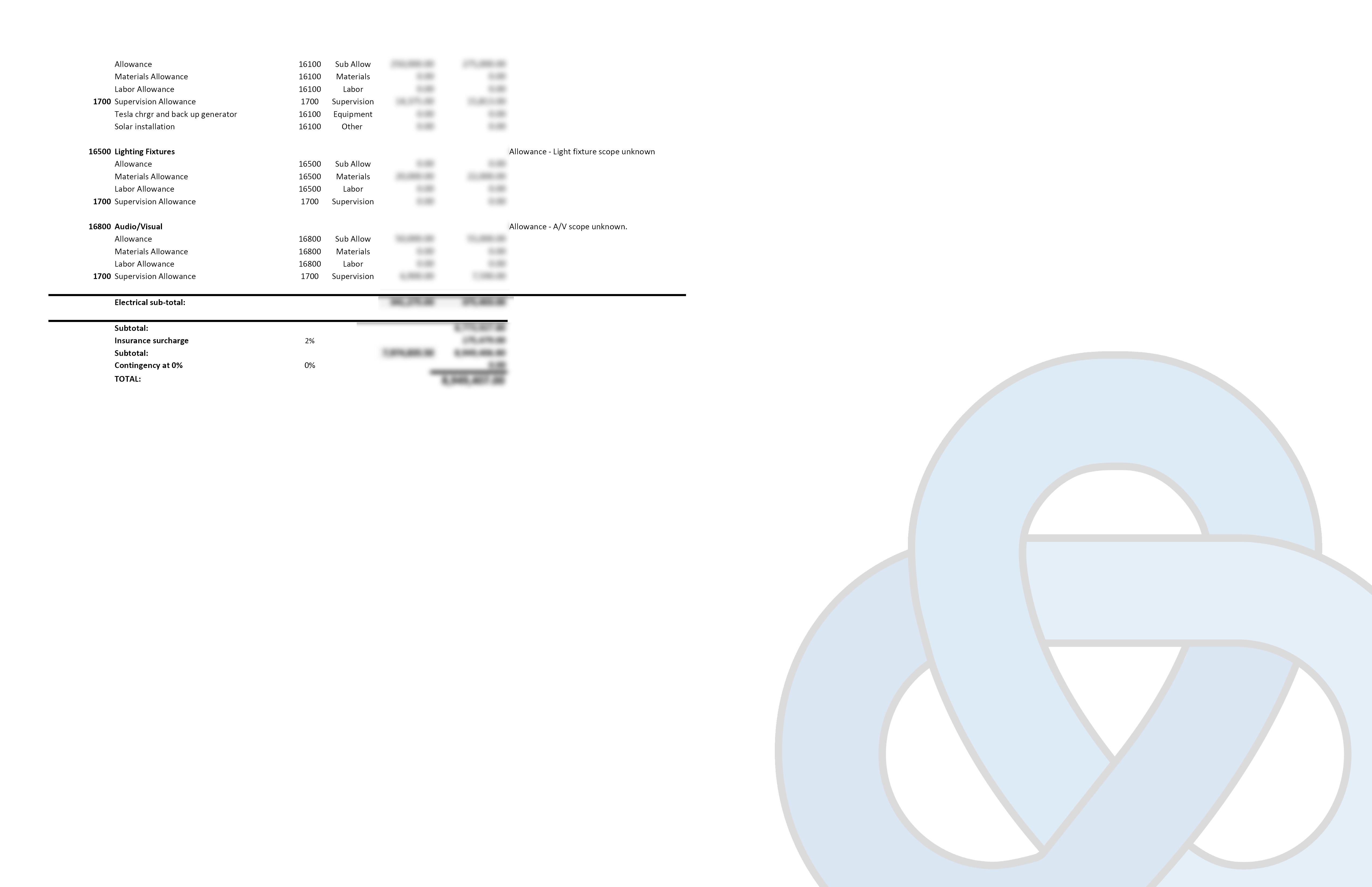 Estimate of fees for Pre-Construction Services. Hourly rates for both Pre-Construction and Construction.