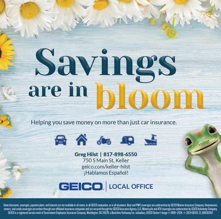 MARKETPLCE Neighborhood Support Your Small Local Business! Other rates and maturities are available. To discuss whether CDs make sense for your portfolio, please call today. • Bank-issued • FDIC-insured • Estate feature • IRA-eligible > edwardjones.com | Member SIPC F D I -242 2K-A © 2 02 3 E DWA R D D J O N E S & CO , L P A L L R I G H T S R E S E RV E D 202 1 07 2 5 Katharine Archer, AAMS™, Financial Advisor 669 Airport Fwy, Suite 311, Hurst, TX 76053 817-285-0007 *Annual Percentage Yield (APY) effective 4/30/24. CDs offered by Edward Jones are bank-issued and FDIC-insured up to $250,000 (principal and interest accrued but not yet paid) per depositor, per insured depository institution, for each account ownership category. Please visit www fdic.gov or contact your financial advisor for additional information. Subject to availability and price change. CD values are subject to interest rate risk such that when interest rates rise, the prices of CDs can decrease. If CDs are sold prior to maturity, the investor can lose principal value. FDIC insurance does not cover losses in market value. Early withdrawal may not be permitted. Yields quoted are net of all commissions. CDs require the distribution of interest and do not allow interest to compound. CDs offered through Edward Jones are issued by banks and thrifts nationwide. All CDs sold by Edward Jones are registered with the Depository Trust Corp. (DTC). Maturity date Rate 3-Month 5 30% 6-Month 5.20% 9-Month 5.15% 1-Year 5 15% 18-Month 5 10% Edward Jones CD rates for the week of April 30, 2024 Current Edward Jones CD rates $89 PER MONTH Promote your business to over 13,500 potential customers each month in one of the fastest growing markets in North Texas. MARKETPLCE Neighborhood Contact: Brenda Higgins | 817.705.1305 | brenda@287northliving.com