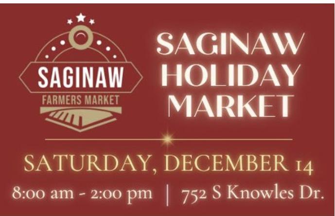 The Holiday Market at the Switchyard will be Saturday, December 13, 8am-2pm. We will have tons of vendors and delicious food. It’s the perfect start to your holiday season! This event is free and open to the public. It is located at the Food Truck Park located at 752 S. Knowles Drive, Saginaw.