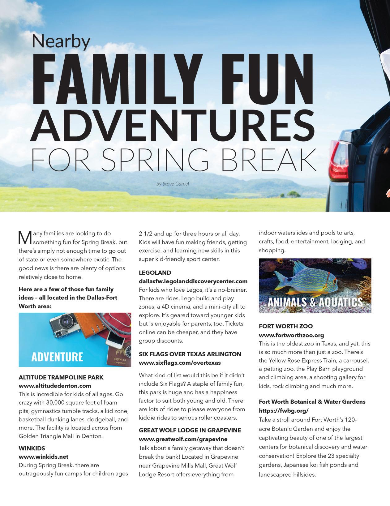 20 Easy Beef Taco Skillet Recipe 22 Tony Jeary: Change Mindset Matters 24 Nearby Family Fun Adventures for Spring Break 26 Saginaw-Based Community Link 28 Treat Your Pet’s Anxiety 29 Citizens Police Academy 30 Saginaw Concert Series 04 You Send it We Print It 07 5 Things To Try: Video Challenges With Your Pet 08 8 Reasons Why Your Pet is Basically A Therapist 10 Opal’s Farm, The Gem of Fort Worth 12 How To Prep For Spring Break 14 Ten Hot Pet Products 18 Inside Community & Education Contents 16 | On The Cover Lawn Escapades Focuses On What’s Behind The Home FEBRUARY 2023 | 287 NORTH LIVING | 5 www.287NorthLiving.com