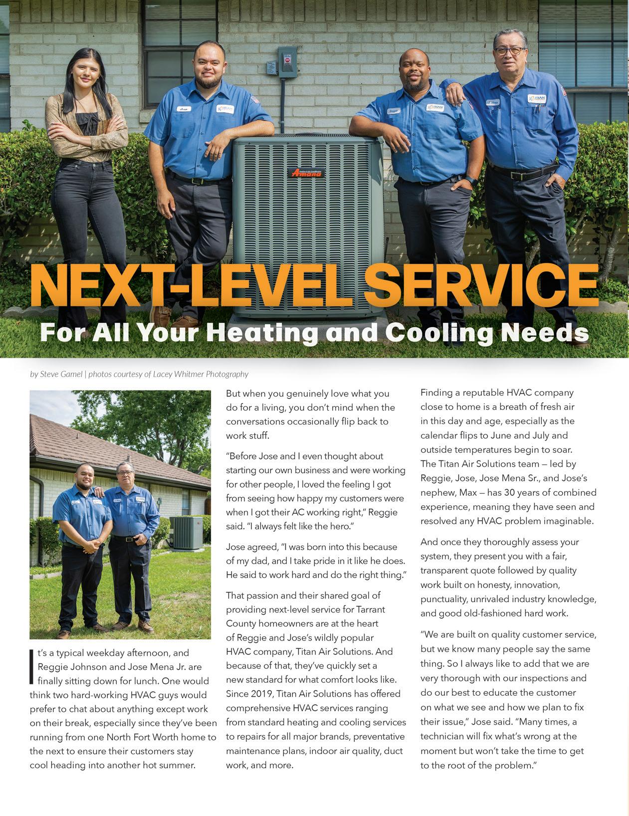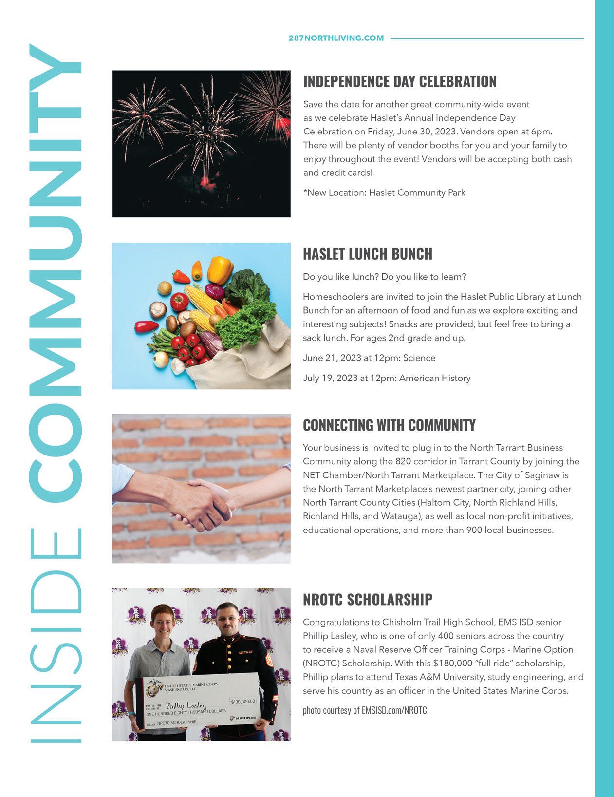 Ten Hot Beaches To Visit 16 Inside Community & Education 21 Things To Do In June 22 Pet Care In The Heat 24 Ten Basic Rules of Interior Design 25 Saginaw Senior CenterJuly 2023 04 Saginaw 2023 Independence Day Celebration 07 5 Things To Do: Summer Bucket List 08 Family 4th (On The 3rd) 10 Alzheimer’s Awareness: The Reality Of The Disease 12 The Lonely Potato: Texas Gardening 101 CONTENTS 18 | ON THE COVER Reggie Johnson & Jose Mena Jr. with Titan Air Solutions 26 Seven Crafty Ways To Keep The Kids Entertained During Long Vacation Travel 29 EMS ISD 2023 Summer Camps JUNE 2023 | 287 NORTH LIVING | 5 www.287NorthLiving.com