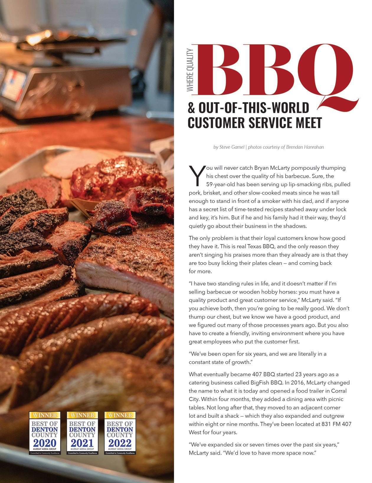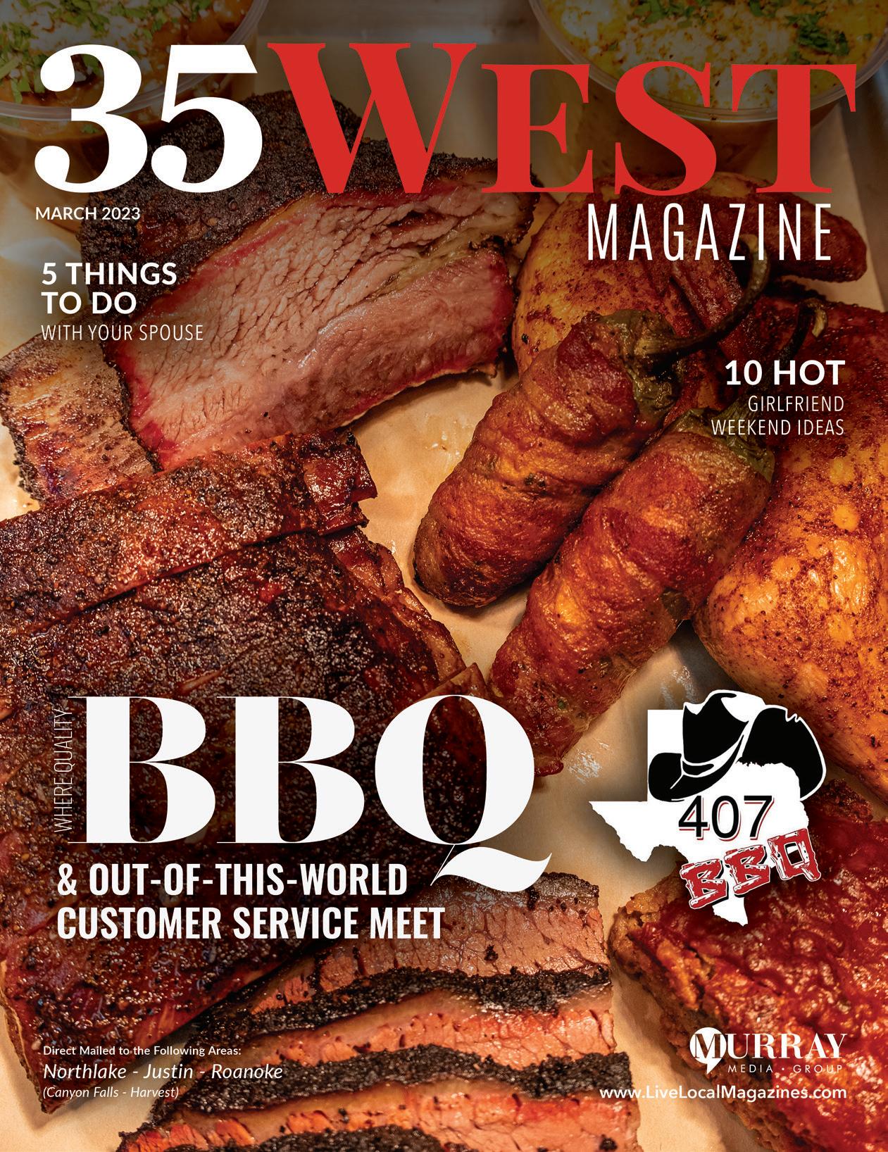 08 Be The Reason Real Estate: A Client-Centric Approach 12 Spring Fashion Guide 14 Dentistry With Country Lakes Family Dental 16 Ten Hot Girlfriend Weekend Ideas 18 Judge Any Eads: Plan Ahead For Spring Storms 19 Lantana Pediatrics: Getting Ahead of Childhood Allergies Contents 20 | On The Cover 407 BBQ 22 Ally’s Wish 23 The Big DebateApril Fool’s Prank 24 Sheriff’s Corner With Sheriff Tracy Murphree 25 Team Picks - Best Flowers 26 5 Things To Do: Dates With Your Spouse 27 Lamar National Bank: A Community Focus 28 Leigh Ann Artho: Skills Intellect, & Altruism 30 Champions Rotary Annual Clay Shoot MARCH 2023 | 35 WEST | 5 www.LiveLocalMagazines.com