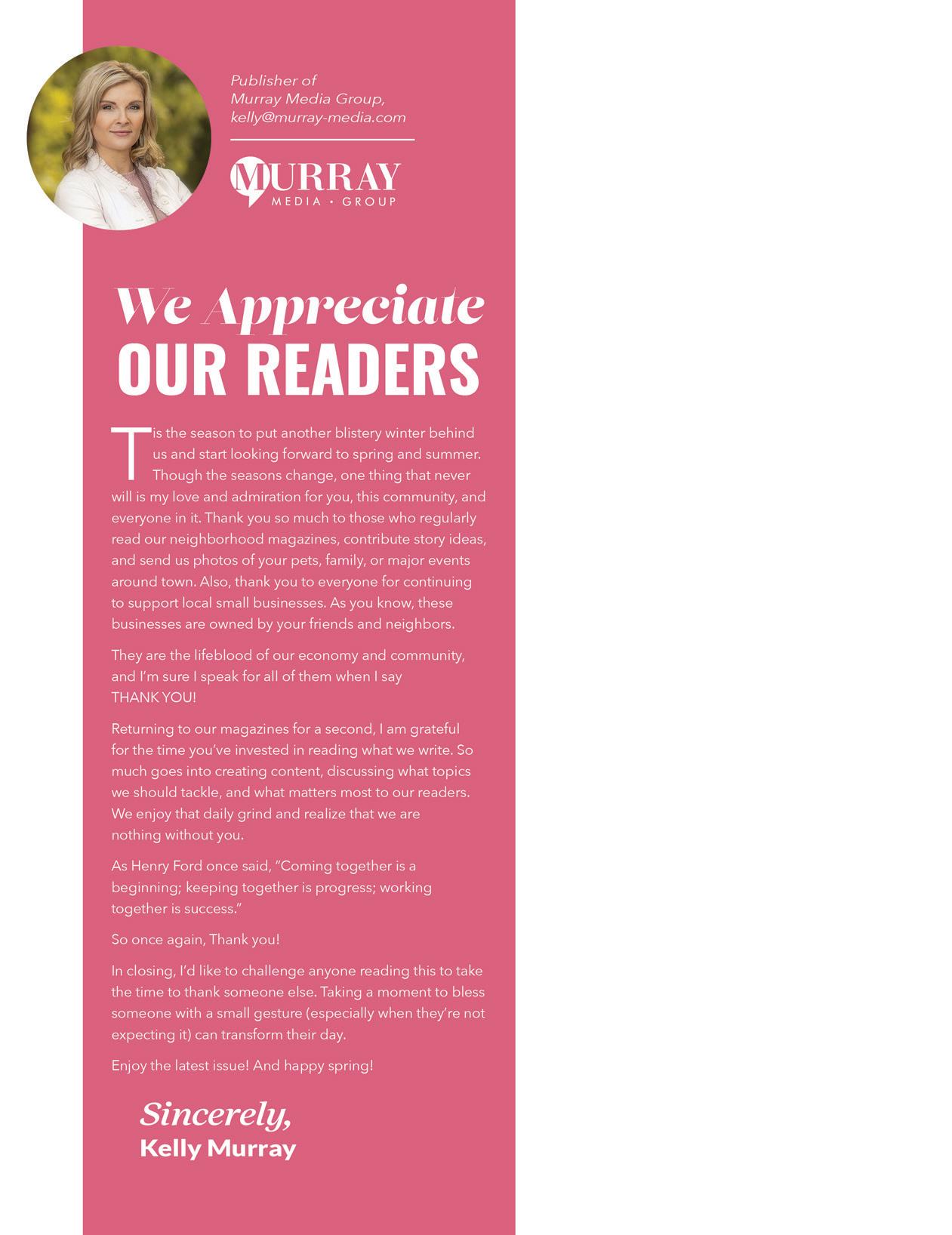 Editorial Inquiries Call 972.899.3637 or email editor@murray-media.com