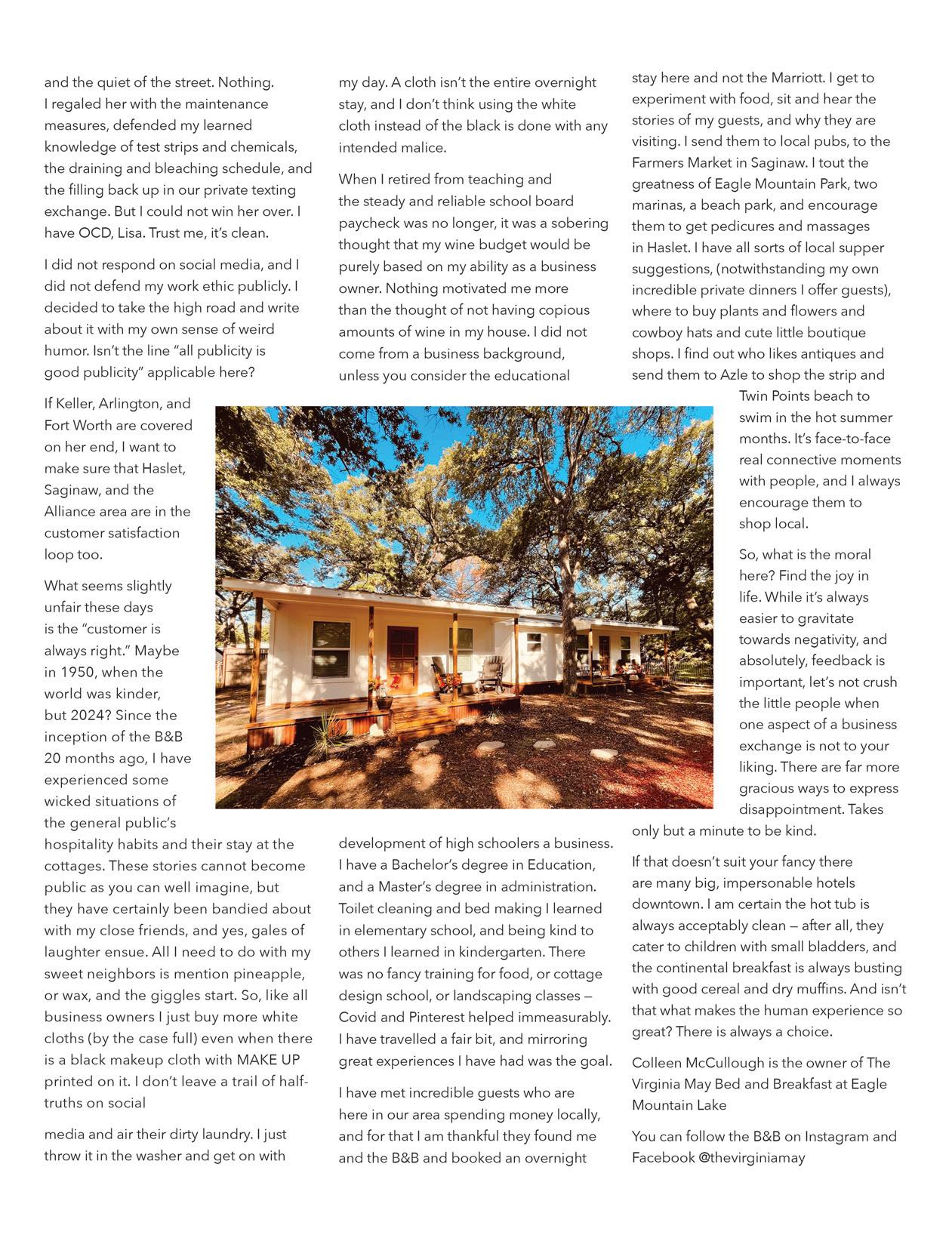ISSUE 03 | MAR 15 - APR 19, 2024 | ALLIANCE LIVING | 5 AllianceLivingMagazine.com CONTENTS TABLE OF 11 Date Night Dinner - Ravioli With Brown Butter Sauce 12 10 Hot Staycations 14 Blueberry Breakfast Bake Recipe 15 Eagle Mountain Saginaw Rotary Car show 18 5 Things To Do To Help Save The Earth 20 Hops & Props Beerfest 2024 22 Expectation Is The Root Of All Heartache 24 Unveiling The Language of Love 26 Creating Peace By Piece 38 It’s Hail Season Ya’ll 29 Bougee On A Budget 30 Life Solutions Coaching & Counseling: Antidote to Anxiety 03 Saginaw Senior Calendar 07 Clearwater Plumbers: The King of Cast Iron 08 The Local Buzz 10 Be Interested, Not Just Interesting The Flower Ranch | In Perfect Bloom ON THE COVER 16