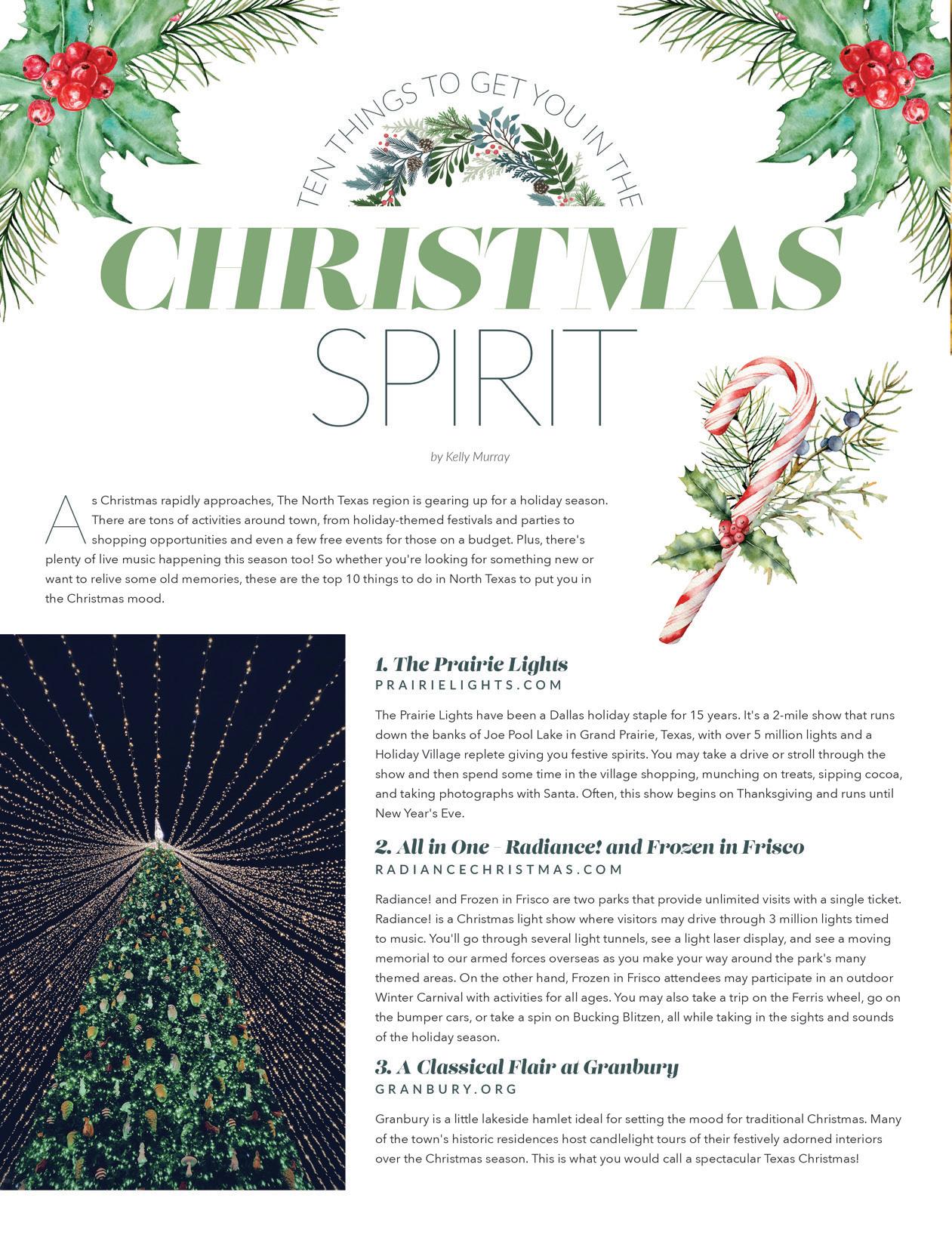 Contents FEATURED 22 10 READ WHAT THE PROS ARE READING ARTICLES 21 CHRISTMAS PAWS FOR A CAUSE T A BLE O F 07 5 THINGS TO DO: BLACK FRIDAY SHOPPING 08 CAJUN SHRIMP & VEGETABLE SKILLET 15 TRAVEL WITH TERRI GUTHRIE 16 TEN HOT HOLIDAY GIFTS 18 TEN THINGS TO GET YOU IN THE CHRISTMAS SPIRIT 20 HOME DECORATING WITH POSH HOME STAGING & REDESIGN 24 INSIDE COMMUNITY & EDUCATION 26 MAKE YOUR LIST & CHECK IT ONCE 28 CHOOSING AN OUTDOOR WREATH 30 HOLIDAY CLEANING TIPS Hangout NEIGHBORHOOD YOUR @MailboxMedia NOVEMBER 2022 | ALLIANCE LIFE | 5 Facebook: @AllianceLifeMagazine