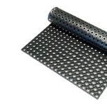 Thread a fleece strip down through a hole in the mat and back up in the hole next to it and tie into a knot. Repeat until the mat is full.