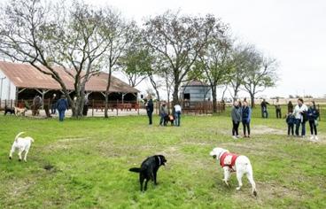 With a canopy of mature trees, this five-acre, fully fenced park offers separate areas for small and large dogs. With multiple wa ter fountains, abundant seating, and pet-waste stations, this dog park gives you all the essentials. Maintained regularly, the spacious Bermuda grass turf is gentle on joints, ensuring a clean, safe, and communi ty-friendly environment for your dog.