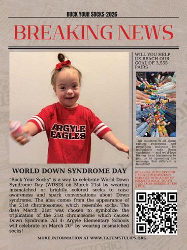 Argyle Living is published monthly by Murray Media Group. Some articles and/or content may be sponsored by advertisers. Opinions expressed in articles or advertisements do not necessarily reflect the opinion of the publisher. Argyle Living is not responsible for omissions or information that has been misrepresented to the magazine. Advertisers and its agencies assume all liability for advertising content. No part of this publication may be reproduced or transmitted without the permission in writing from the publisher. © 2026 Murray Media Group