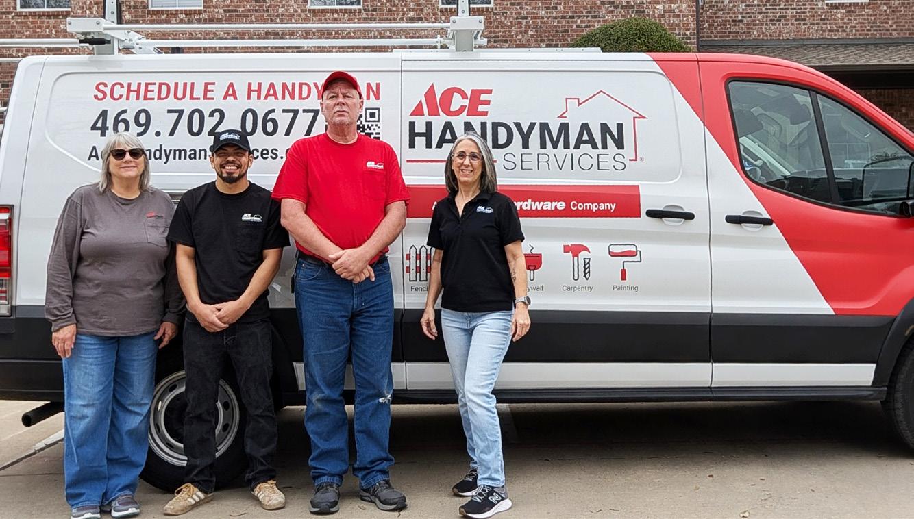 Whether you’re facing a long list of repairs or have a specific project in mind, no job is too small for Ace Handyman Services. Their professional, licensed craftsmen can help with over 1,100 different services, ranging from drywall repairs and paint jobs to general home maintenance and hardware adjustments. From quick, onehour fixes to more involved projects, their aim is to make your home more comfortable, functional, and enjoyable. Plus, all labor comes with a one-year warranty, ensuring that you never have to pay extra for peace of mind.