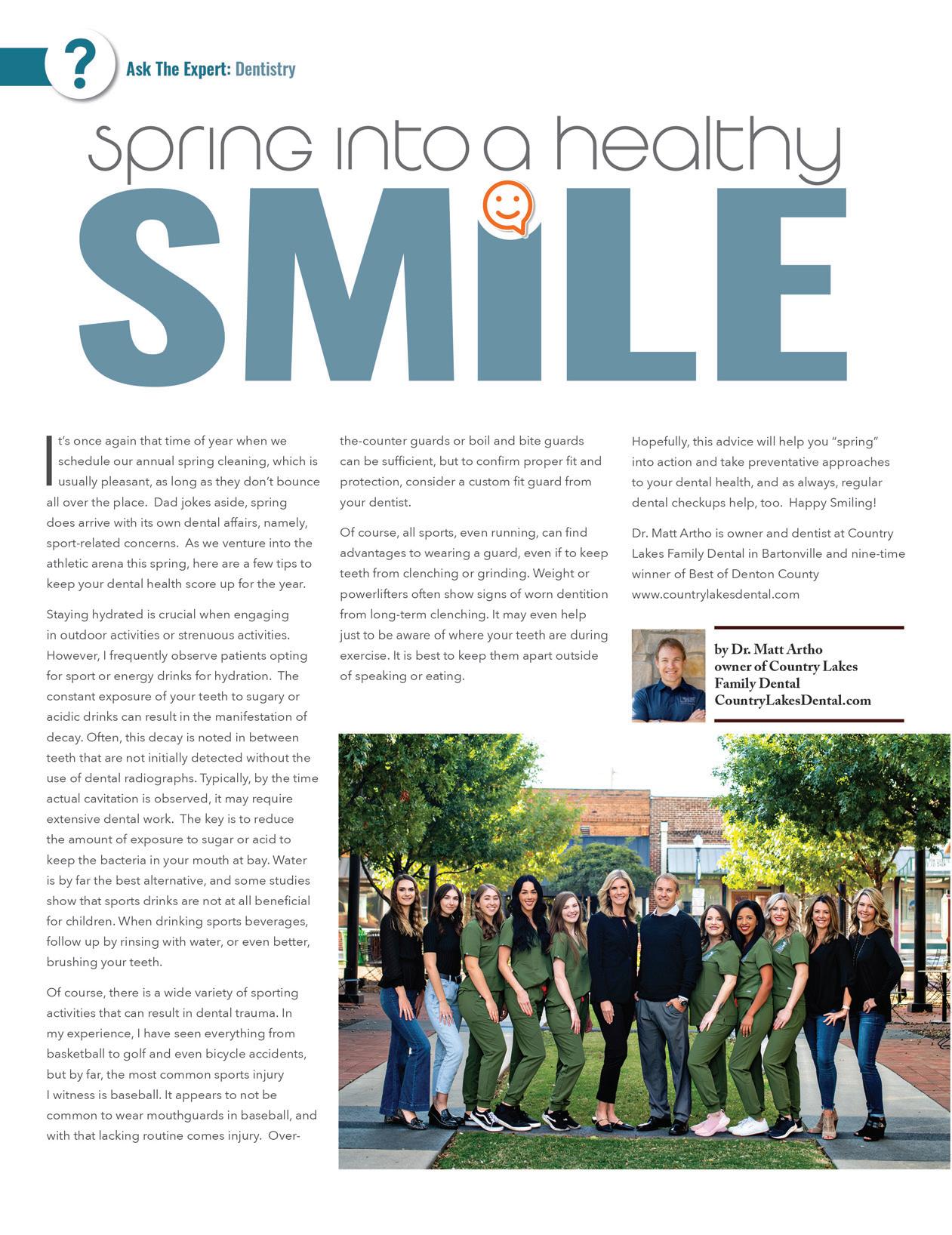 FEBRUARY 2023 | ARGYLE LIVING | 5 www.LiveLocalMagazines.com 08 Dentistry With Country Lakes Family Dental 10 Ten Hot Pet Products 12 Tony Jeary: Change Mindset Matters 14 Lantana Pediatrics: Developing Fears, Worries & Anxieties 16 The Big Book Debate 18 Coach Todd Rodgers 20 Gardening With Complete Solutions Contents 26 | On The Cover Thomas Little & Vann Little with Little Family Law Firm 22 8 Reasons Why Your Pet is Basically A Therapist 28 How To Prep For Spring Break 30 5 Things To Try: Video Challenges With Your Pet 32 Nearby Family Fun Adventures For Spring Break 34 Bobbie Mitchell: February Is American Heart Month, Go Red For Women 36 Sheriff’s Corner With Sheriff Tracy Murphree 38 Tea, Anyone? 40 How To Treat Your Dog’s Separation Anxiety 42 Easy Beef Taco Skillet Recipe
