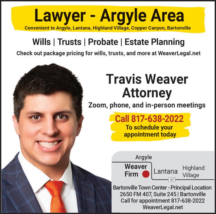 Argyle Living is published monthly by Murray Media Group. Some articles and/or content may be sponsored by advertisers. Opinions expressed in articles or advertisements do not necessarily reflect the opinion of the publisher. Argyle Living is not responsible for omissions or information that has been misrepresented to the magazine. Advertisers and its agencies assume all liability for advertising content. No part of this publication may be reproduced or transmitted without the permission in writing from the publisher.