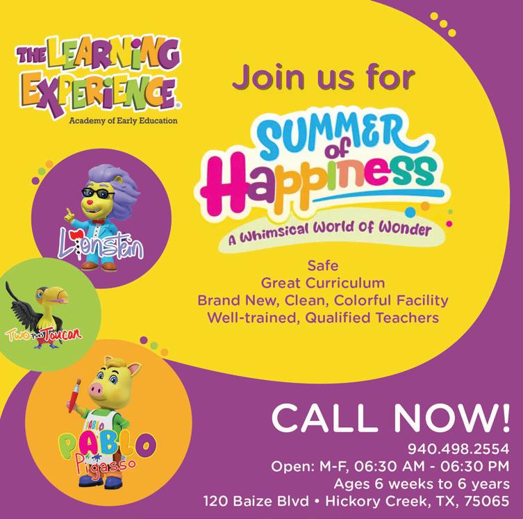 5 Things to Try: Water Parks County Update: Assisting Denton County Storm Victims 10 Pavlov Media: High Speed Internet to the Lake Cities 11 Lake Cities Trade Days & Farmers Market 12 Summer Fashion Guide Girls Who Fight Escape Into a Book Citizen of the Year CONTENTS TABLE OF 08 10 HOT Summer Classes to Expand Your Horizons 18 ON THE COVER RITE NOW AC, Plumbing & Heating LiveLocalMagazines.com ISSUE 06 | JUN 21 - JUL 19, 2024 | LAKE CITIES LIVING | 5