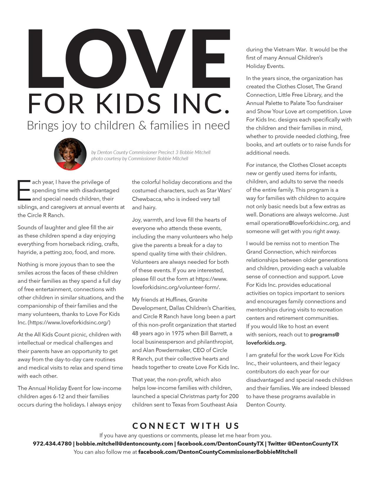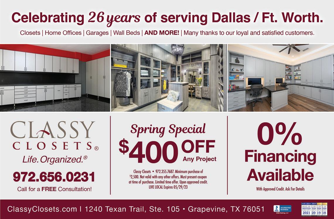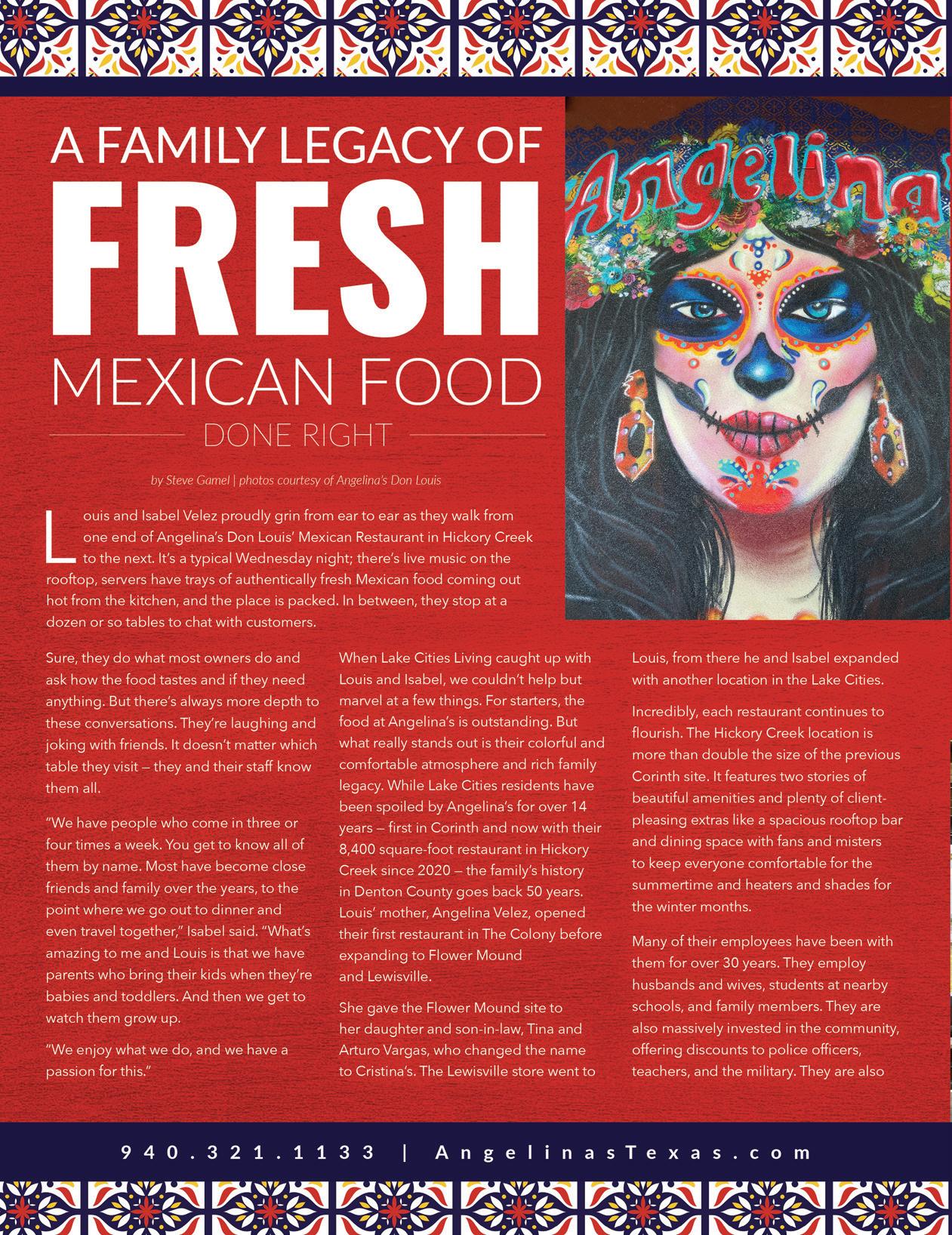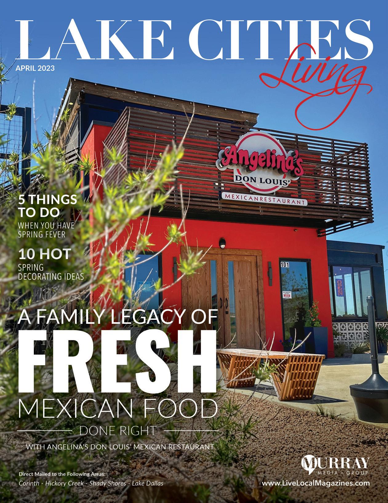 APRIL 2023 | LAKE CITIES LIVING | 5 www.LiveLocalMagazines.com 08 Ten Hot Spring Decorating Ideas 10 Internet Safety You Should Teach Your Kids 12 You’re Such a Character! 14 Nationally Recognized but Close to Home 16 Movies with Mom 19 Sheriff’s Corner with Sheriff Tracy Murphree Contents 22 | On The Cover Angelina’s Don Louis’ Mexican Restaurant 20 Texas Laws to Know Before you Hit the Road 21 Team Picks: Snacks for Kids 24 5 Things To Do When You Have Spring Fever 25 The Big Debate: Where Would You Prefer To Go On Vacation? 26 How to Achieve the Minimalist Aesthetic When You Have A Lot of Stuff 28 Sam Pack to Receive Honorary Doctorate from Tarleton State University 29 Commissioner Bobbie Mitchell: Love For Kids Inc. Brings Joy to Children & Families in Need 30 Closets for Prom