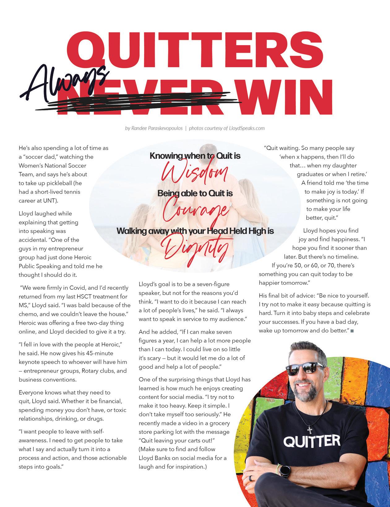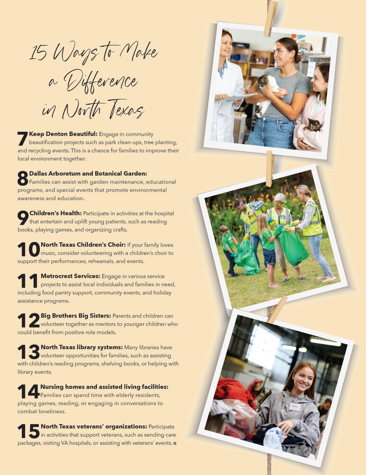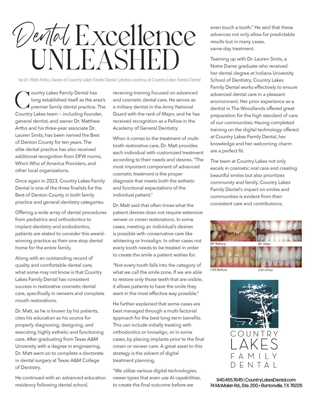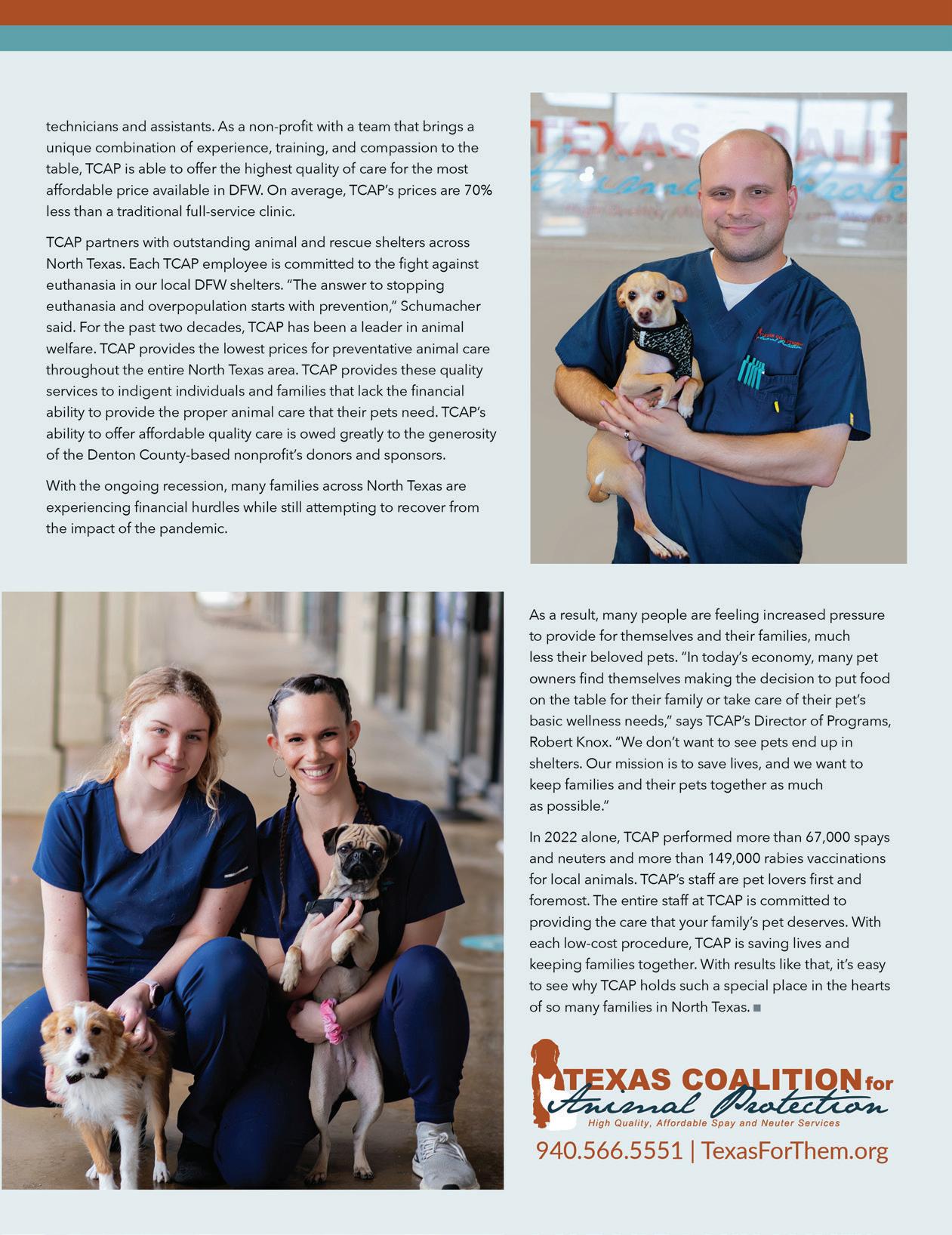 49 Nicole Smith Woodard - Leading With Purpose & Passion 50 Lori Walker - Leading With Passion & Compassion 51 Dino Day 08 Ten Hot Labor Day Get-Aways 12 Foodie Friday DFW: Dix Cafe 13 Travel With Terri Guthrie 14 Family-Friendly Volunteering 16 The Woodhouse Day Spa: The Spa For Life 18 Gardening With Complete Solutions 20 Denton County Spotlight: Passion For Outdoors Inspires New NonProfit 22 Decorating With Posh Home Staging & Redesign 24 Judge Andy Eads: Recognizing Process Improvements 27 Sheriff’s Corner With Sheriff Tracy Murphree CONTENTS 34 | ON THE COVER Affordable, Quality Pet Care with Texas Coalition for Animal Protection 29 Team Picks: Inspiring Women 30 Fitness With Outlaw Fitcamp 32 Lantana Pediatrics: Playing Outside, Why It’s Important For Kids 36 A Welcome Ray of Sunshine 40 Teresa’s House, Senior Care Excellence 42 Dawn Cobb - A Legacy of Giving Back 44 Patricia Peters - Creating World Hope & Peace 46 Ann Martin - A Trailblazer in Leadership & Public Service 47 Bobbie Mitchell - Pioneering Leadership With Integrity & Impact 48 Lori RappEmpowering Education 52 Dental With Country Lakes Family Dental 56 Strawberry Pavlova Recipe 57 Senior Games Medalist, Ray Wright 58 Lloyd BanksQuitters Always Win LiveLocalMagazines.com AUGUST 2023 | LANTANA LIVING | 5