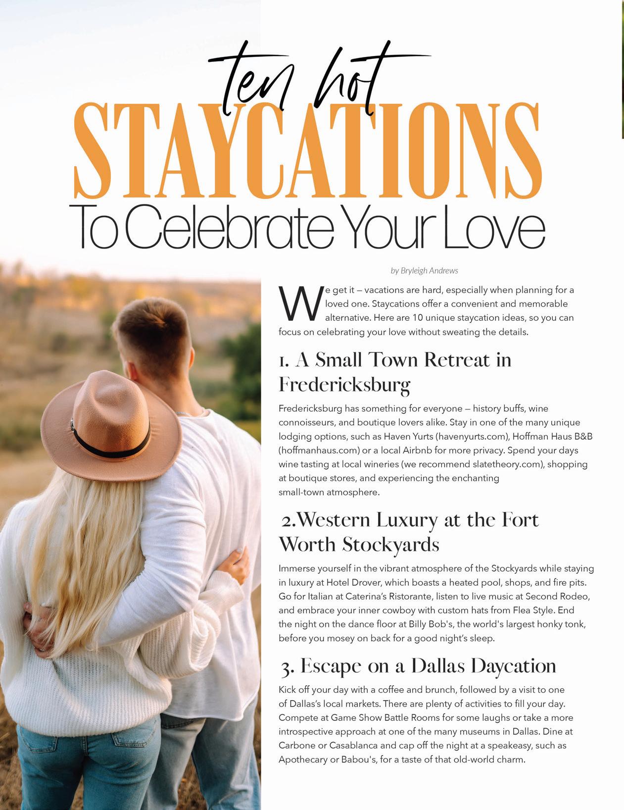 CONTENTS TABLE OF 12 ON THE COVER Hillcrest Family Dental 08 Lone Star Talent 10 Creating Examples For Future Generations 11 Lewisville Firefighter Andy Allison 14 The Chat Room 15 5 Things To Do To Help Save The Earth 16 Dust Off The Drama 18 Spring Fashion Guide 20 All About Earth Day 22 Krieger Orthodontics: We Love Your Smile 24 10 Hot Staycations To Celebrate Your Love 26 Denton County Spotlight: Cross Timbers YMCA 28 Unveiling the Language of Love 30 Sheriff’s Corner with Sheriff Tracy Murphree ISSUE 03 | MAR 16 - APR 19, 2024 | LIFE IN CASTLE HILLS | 5 LiveLocalMagazines.com