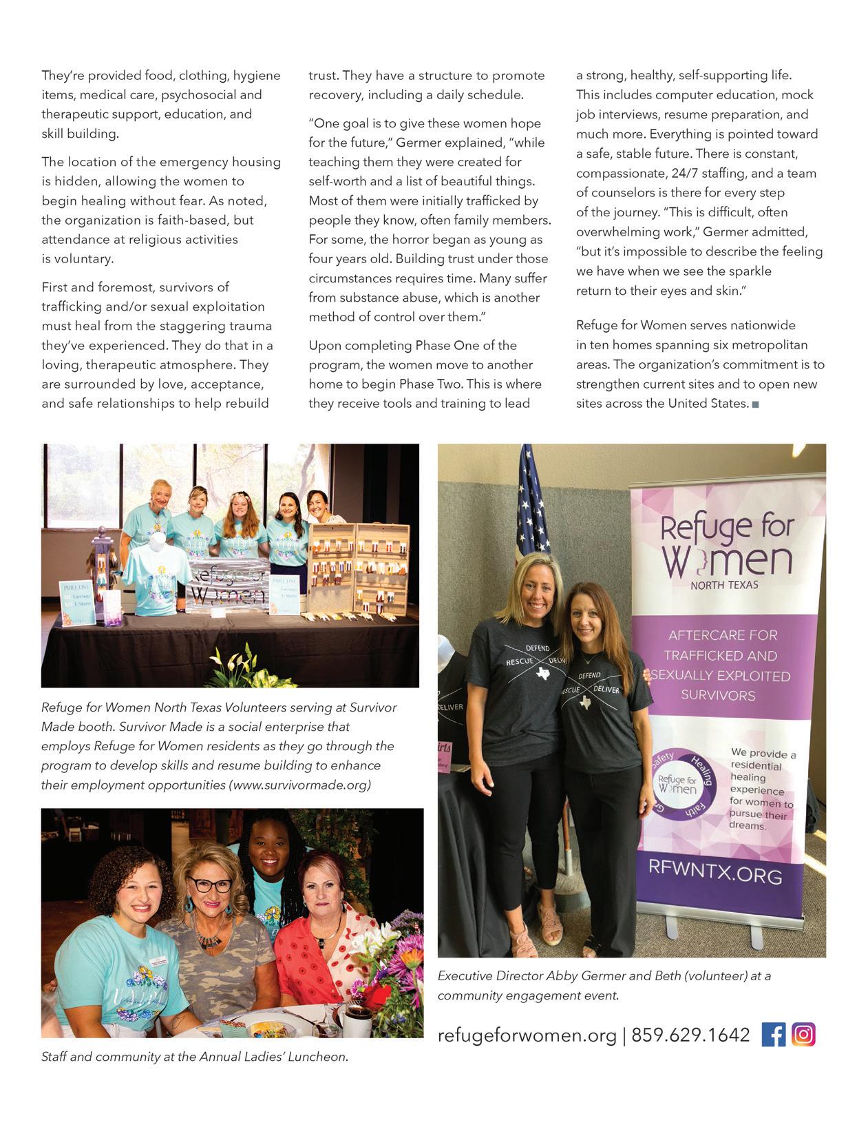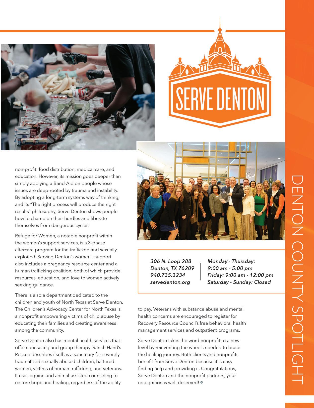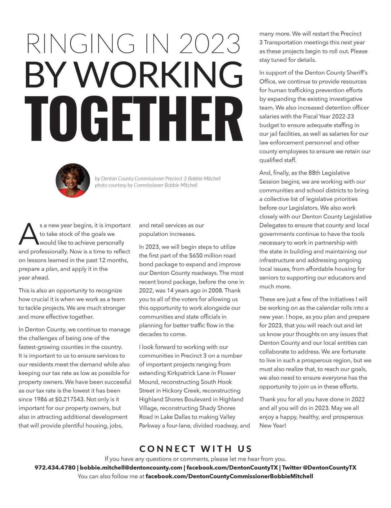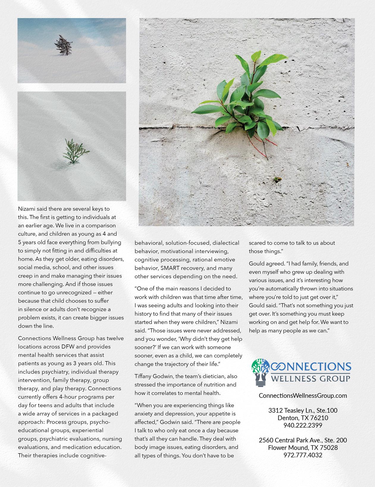 JANUARY 2023 | LIFE IN CASTLE HILLS | 5 www.LiveLocalMagazines.com 19 Sheriff’s Corner With Sheriff Tracy Murphree 23 Low-Key Date Ideas For Valentine’s Day 26 Test Your Knowledge: The American Dollar 27 Money Moves 28 Denton County Spotlight: Work Like A Tortoise, Not A Hare 07 Bobbie Mitchell: Ringing In 2023 By Working Together 08 Ten Hot Valentine’s Gifts 10 The Big Debate: Best Tailgate Food 14 Beauty from the Pain 16 5 Things To Try: Mindful Meals Contents 20 | On The Cover Champions of Change with Connections Wellness Group @CastleHillsMagazine