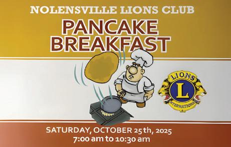 Nolensville Lions Clubs annual pancake breakfast, Saturday, October 25, starting at 7 AM to 10:30 AM with drive-through available upon request. The event is held at the Nolensville Methodist Church at the corner of Nolensville Park Road and 7316 Nolensville Rd.