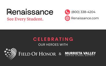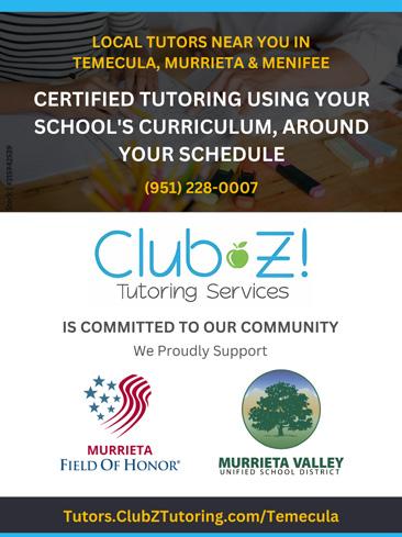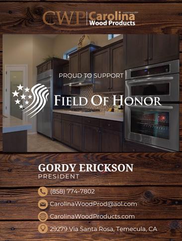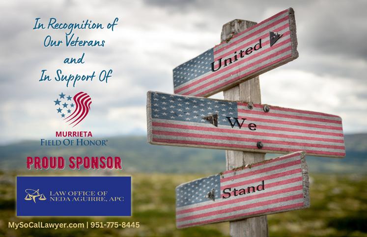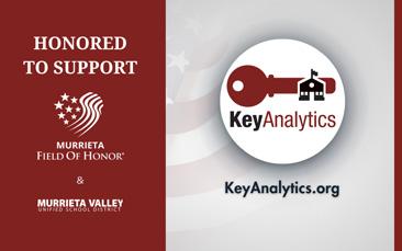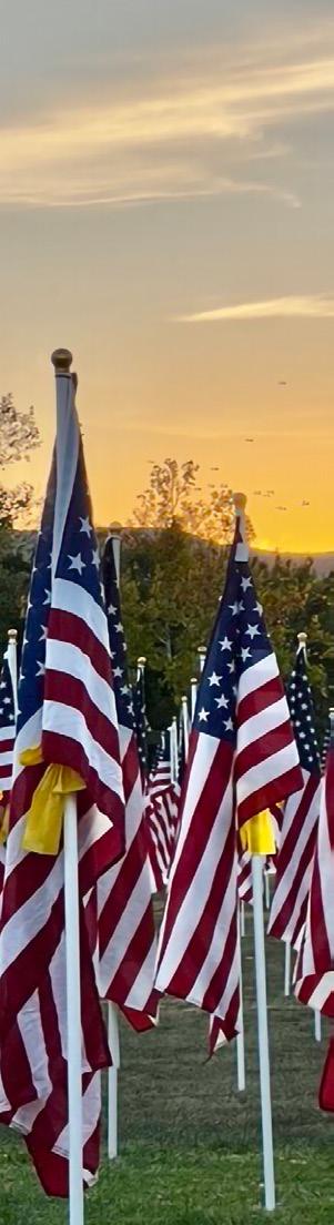 Thanks to our collaboration with the Murrieta Valley Unified School District, the Field of Honor offers a unique educational experience. Each weekday morning, fifth-grade students visit the field for a handson civics and history lesson, using this magazine to guide them through various sections such as the historical flags, Local Heroes, war memorials, 9/11 Rock Garden memorial, chalk art, Medal of Honor tributes, and state flags. This educational initiative is a key part of our mission to inform and engage our community.