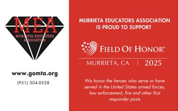 Now in its 17th year, the Murrieta Field of Honor continues to be a beacon of community pride and patriotic spirit. Through the ongoing partnership with MVUSD, the event not only pays tribute to our heroes—it sows the seeds of respect, gratitude, and civic responsibility in the hearts of the next generation.