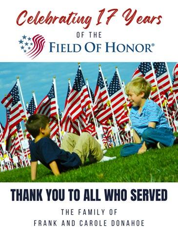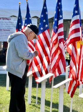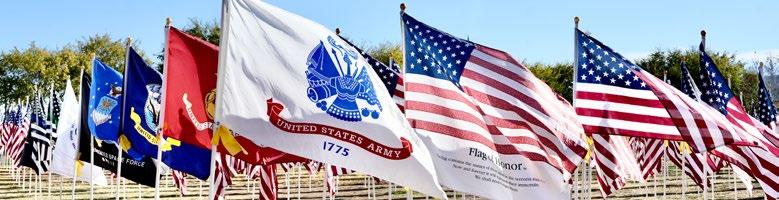 As you walk through the Field, you will see more than 2,025 American flags proudly displayed. A large section is devoted to flags you can purchase and dedicate to your favorite hero. You will also find historic flags, tributes to California Medal of Honor recipients, Local Heroes, and all 50 state flags. Make sure to visit the Patriotic Chalk Walk, a unique artistic tribute to American pride. For a guided tour of these meaningful displays, please refer to pages 20-21.