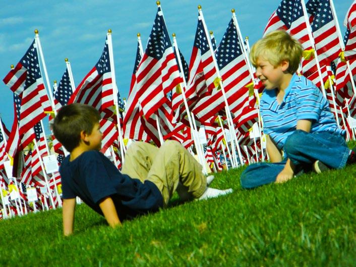 Cover Photo | Family Time: Harrison Robert Beggs and Bradley Coffman Beggs, sons of Temecula residents Kevin and Allison Beggs enjoy a Field of Honor visit. They are the grandsons of a very proud grandfather, Frank Donahoe, co-founder of the Murrieta Field of Honor, and his wife, Carole.