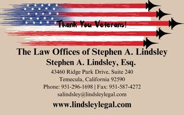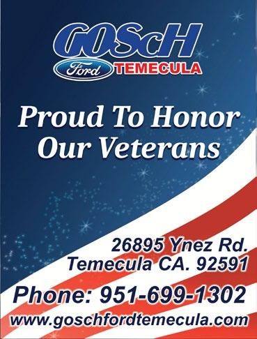 veterans as our guests. The City’s annual Veterans Day parade takes place on Tuesday, November 11, and will end at the Field. During a “Candlelight Concert” on Thursday, November 13, middle school choirs from Murrieta Valley Unified School District will sing songs representing significant periods of our country’s history, accompanied by letters from war read by The Wunderlich family.