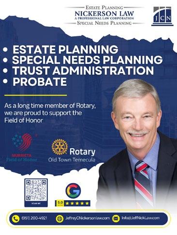 NET PROCEEDS FROM MURRIETA FIELD OF HONOR® HELP FUND ROTARY'S LOCAL COMMUNITY AND INTERNATIONAL SERVICE PROJECTS