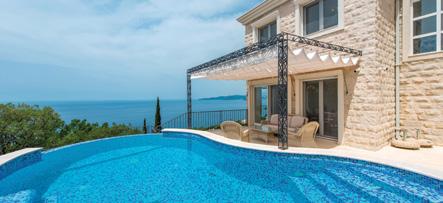 A breathtaking three-storey villa in Reževići boasting eight ensuite bedrooms, multiple sea-view terraces, a heated infinity pool, and sweeping Adriatic panoramas just moments from the coast.