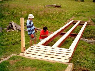 To get the project started in 2023, Well-Safe Solutions kindly introduced Kevin to Aberdeen Fabrication (A-Fab), Aberdeen who very generously produced detailed fabrication drawings and fabricated both zip wire frames. Bodrum Turkish Barbers, Forfar gave a donation towards the purchase of a zip wire kit. This was purchased y that also provided a donation to the Trust. Transport Laurencekirk transported the frame from Aberdeen to t steps. Ritchie Agricultural Implements Ltd, Forfar be shotblasted at their Forfar factory and for it to be isers Ltd. Following this step, local Forfar business High tions (HVMS) stepped in to transport the steel to erected. Terrible weather and flooding then plagued May this year, meaning the project had to be put on