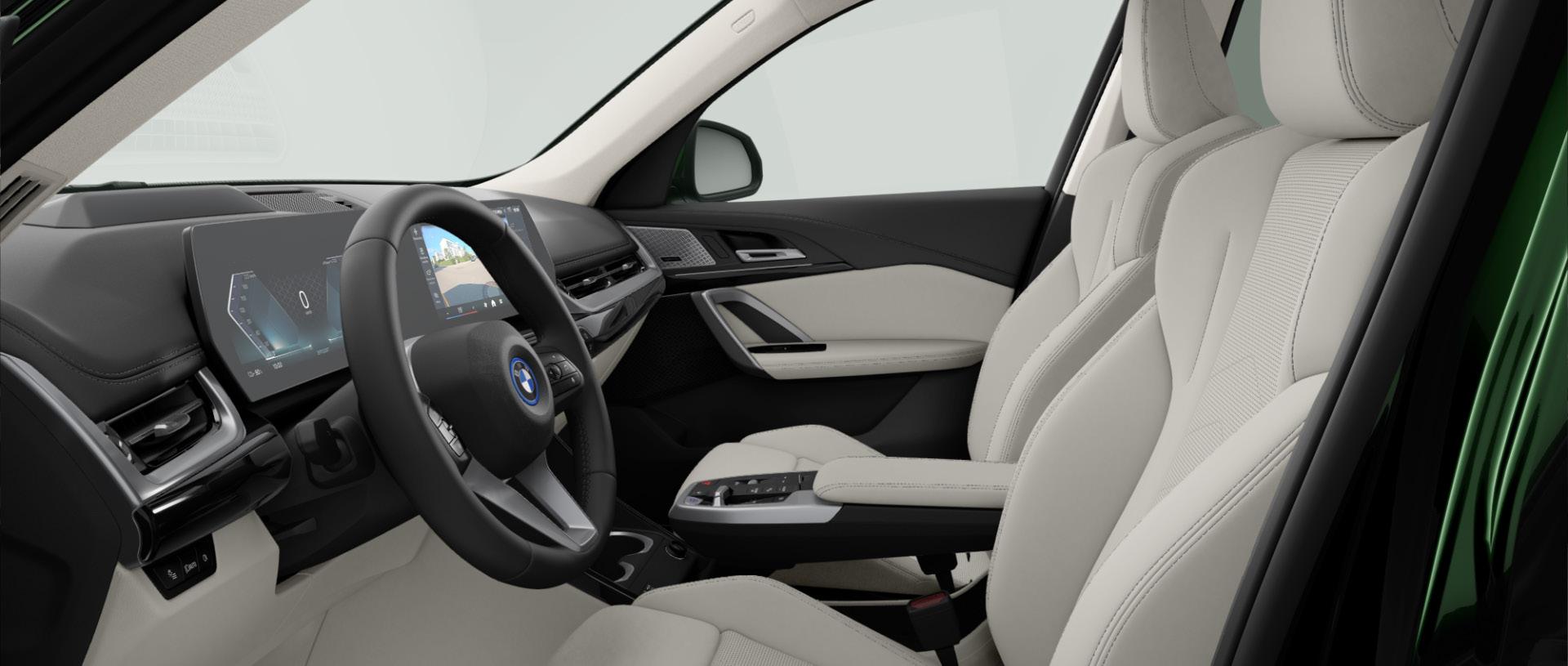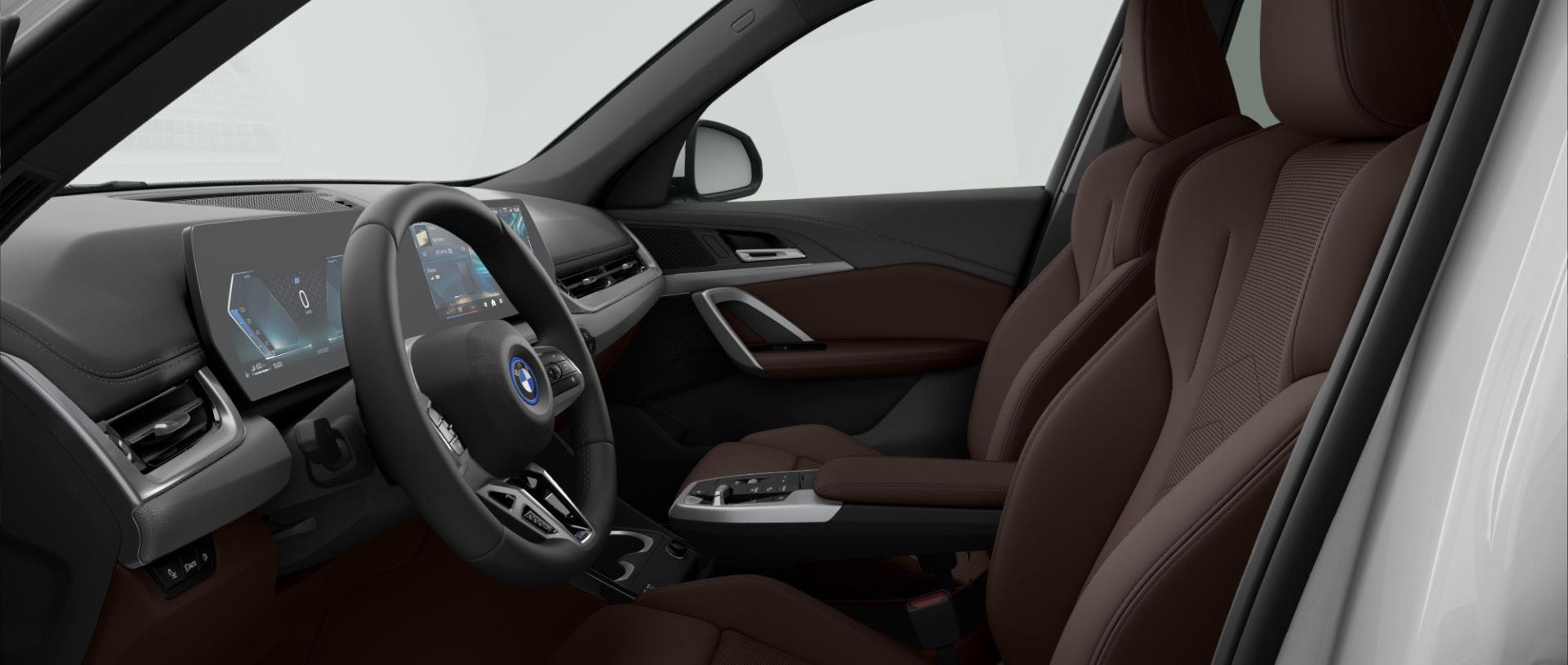 Alpine white Exterior, Veganza perforated Mocha interior, 19” Light alloy wheels Double-spoke style 871 Bicolour Option