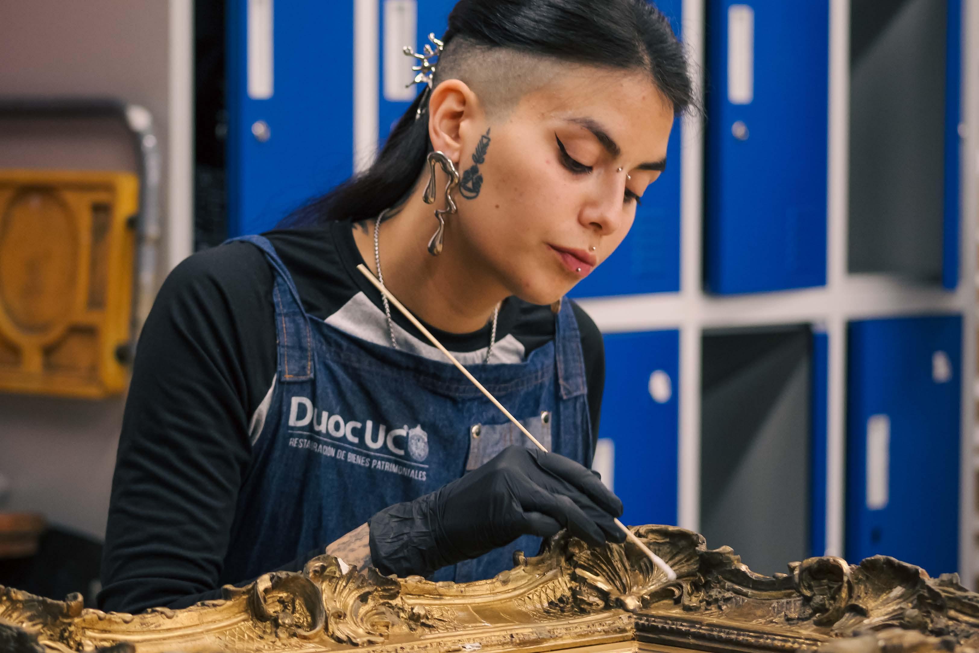 Gracias a una alianza colaborativa con la carrera de Restauración de Bienes Patrimoniales de Duoc UC Sede Valparaíso, se llevó a cabo la recuperación de las molduras de las obras “Los lindes del bosque” de Henri-Joseph Harpignies, intervenida por Diego Fajardo y Danielle Sepúlveda, y “La Prima Donna” de Ulises Caputo, restaurada por Laura Valladares e Isaac Carmona.