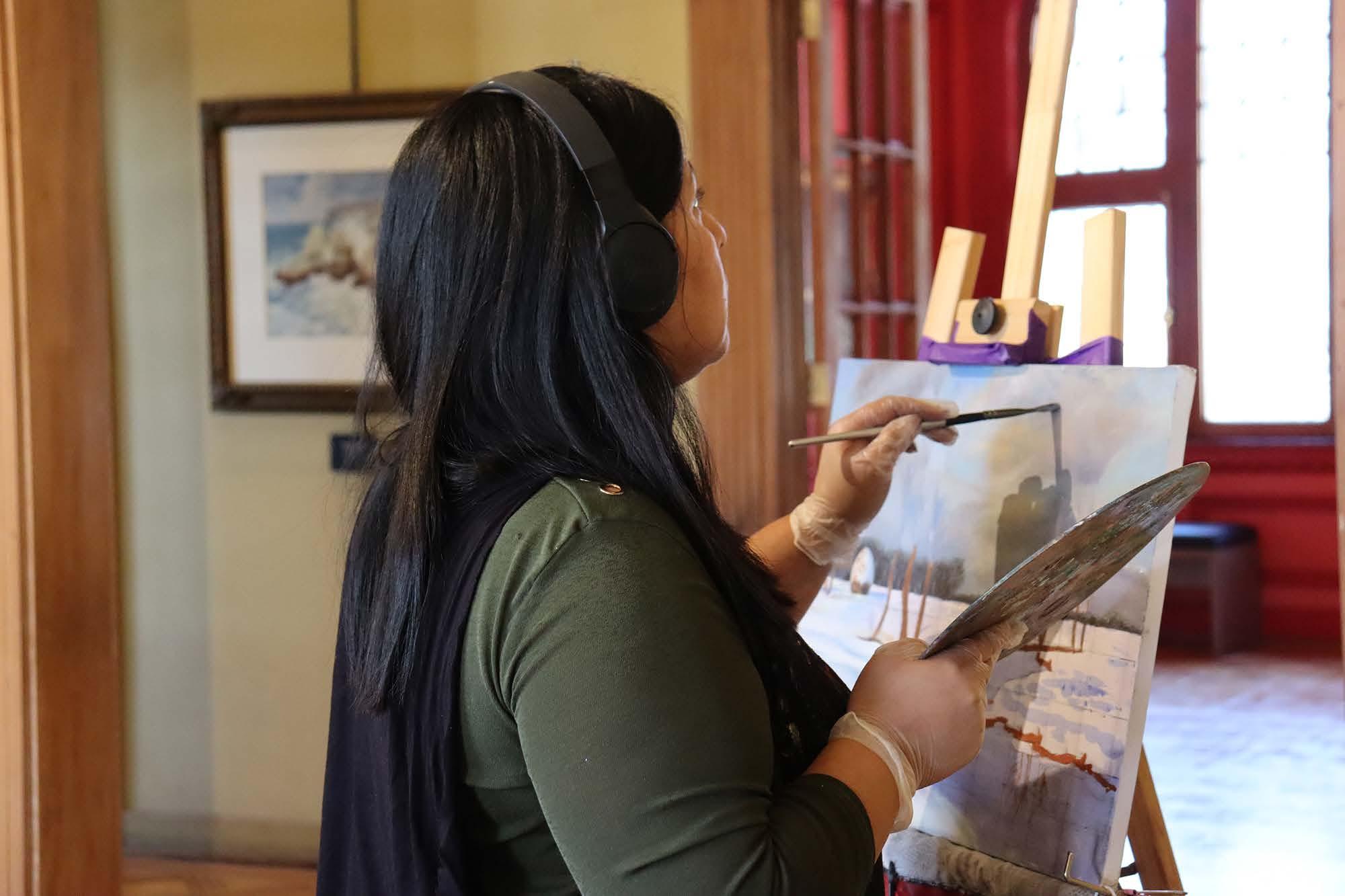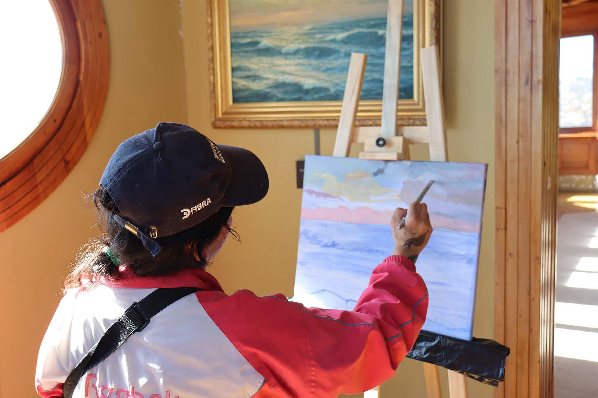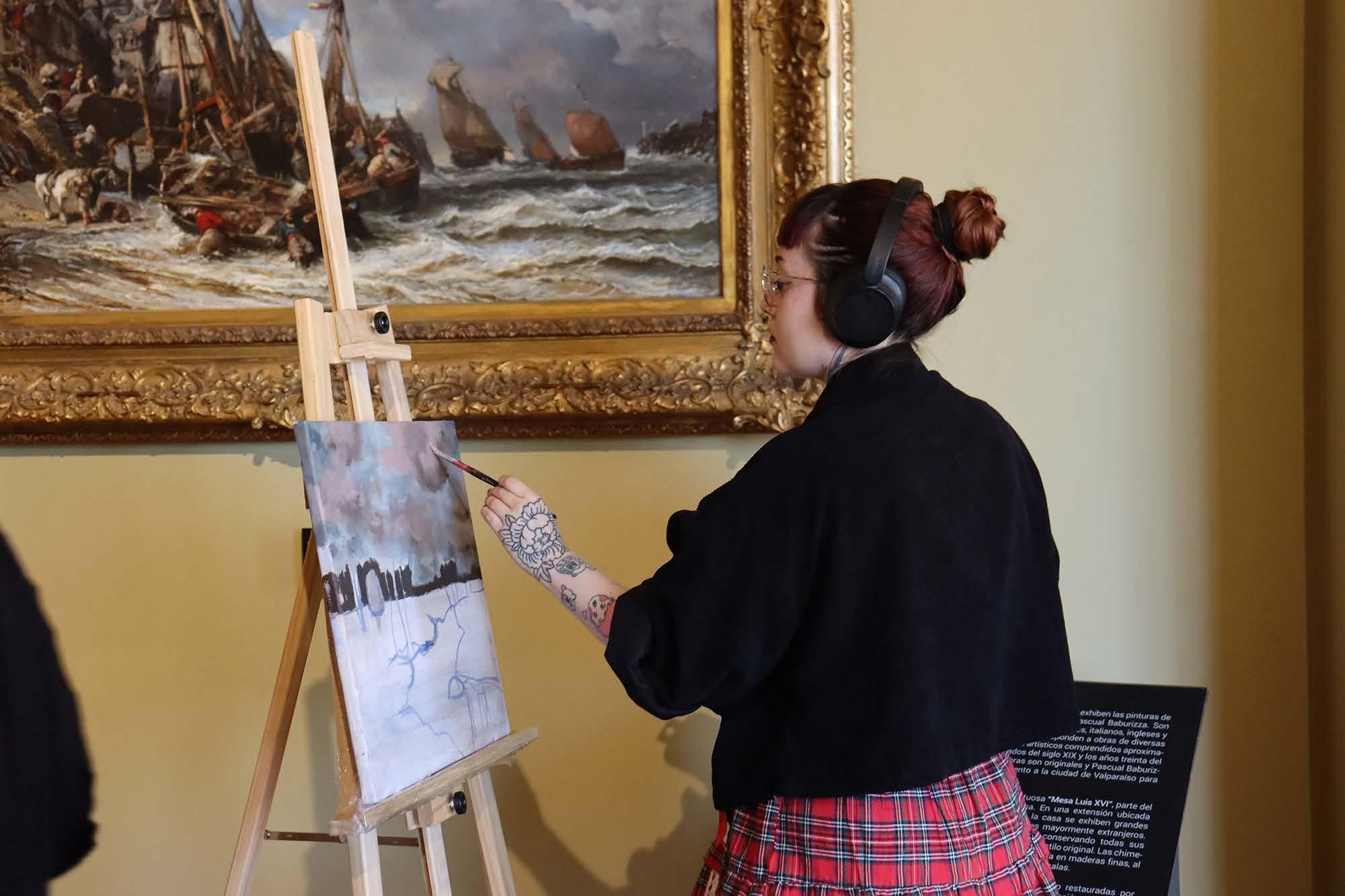 Estudiantes de la Escuela de Bellas Artes de Valparaíso, dentro de su proceso formativo, debían realizar un trabajo de pintura in situ en el museo. En la instancia exploraron técnicas para crear sus propias interpretaciones de obras emblemáticas de la pinacoteca.