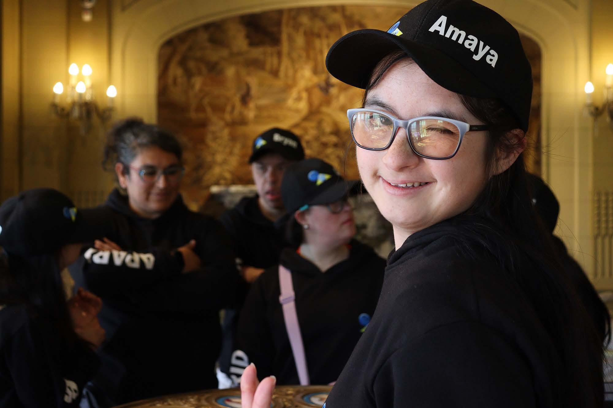 personas con discapacidad visual de la Fundación CEMIPRE, quienes conocieron el Palacio a través de un recorrido mediado basado en la descripción de obras y la exploración táctil de diversos materiales y superficies, acercando las colecciones del Museo desde una experiencia sensorial.