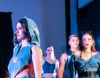 Modelos lucen prendas creadas por ellos mismos con mezclilla reutilizada.