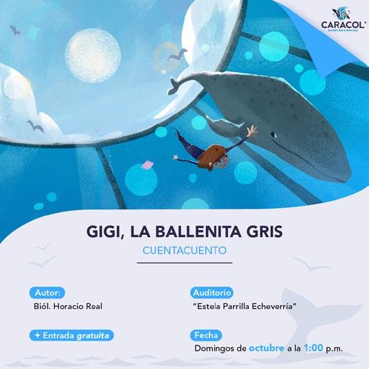 Asimismo, cada domingo se presentó el relato “Gigi: La ballenita gris”, a cargo del biólogo Horacio Real Escobedo, jefe del departamento de Divulgación y Educación Científica y autor del cuento, con ilustraciones de Daniela Abigail Nava Vargas, diseñadora del Caracol Museo de Ciencias.