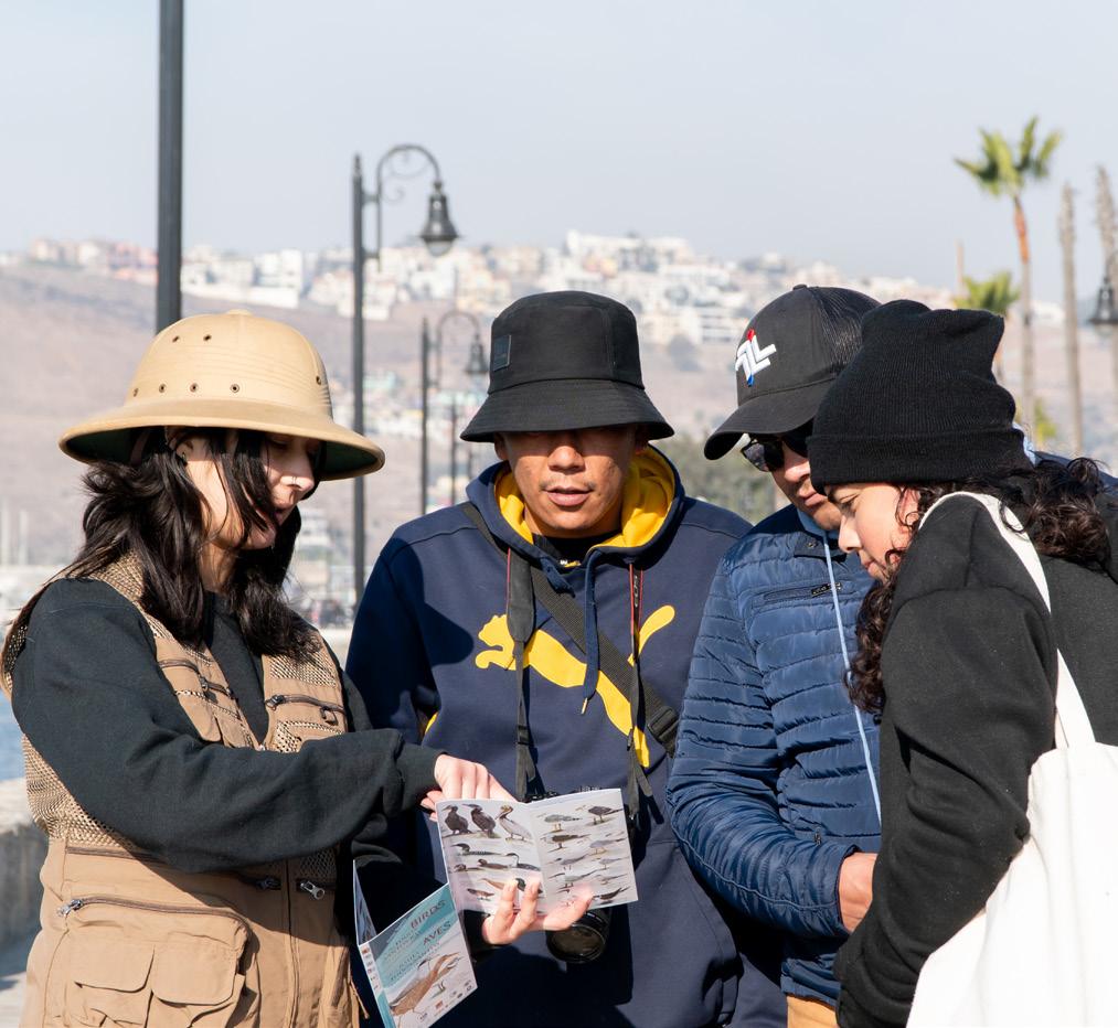 El recorrido estuvo a cargo de Marianita Salvaje, personaje interpretado por la Biol. Mariana Novelo Bátiz, integrante del equipo de Divulgación Científica de Caracol. A lo largo del trayecto, los asistentes identificaron aves y otras especies que pueden encontrarse en las costas de Ensenada.