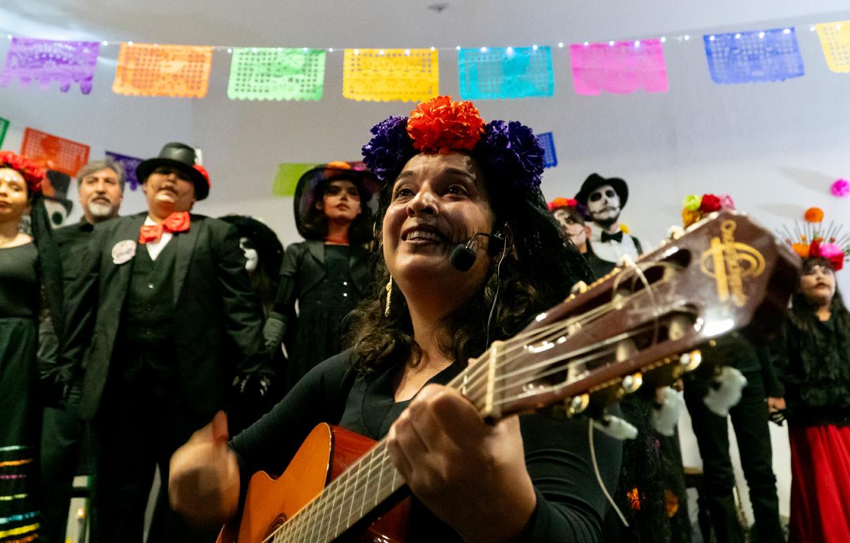En el auditorio “Estela Parrilla Echeverría”, el público disfrutó de la presentación musical “Entre flores nos reciben y entre ellas nos despiden”, una ofrenda musical a cargo del ensamble coral del Instituto Contemporáneo de Música de Baja California (ICMBC) y del coro infantil Xantusii, perteneciente al Sistema Estatal de Música de la Secretaría de Cultura de Baja California. La ofrenda musical fue dirigida por la reconocida soprano Lic. Diana Nevarez Alarcón y contó con la participación especial de Sashenka Fierro como narradora.