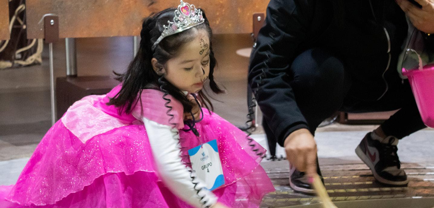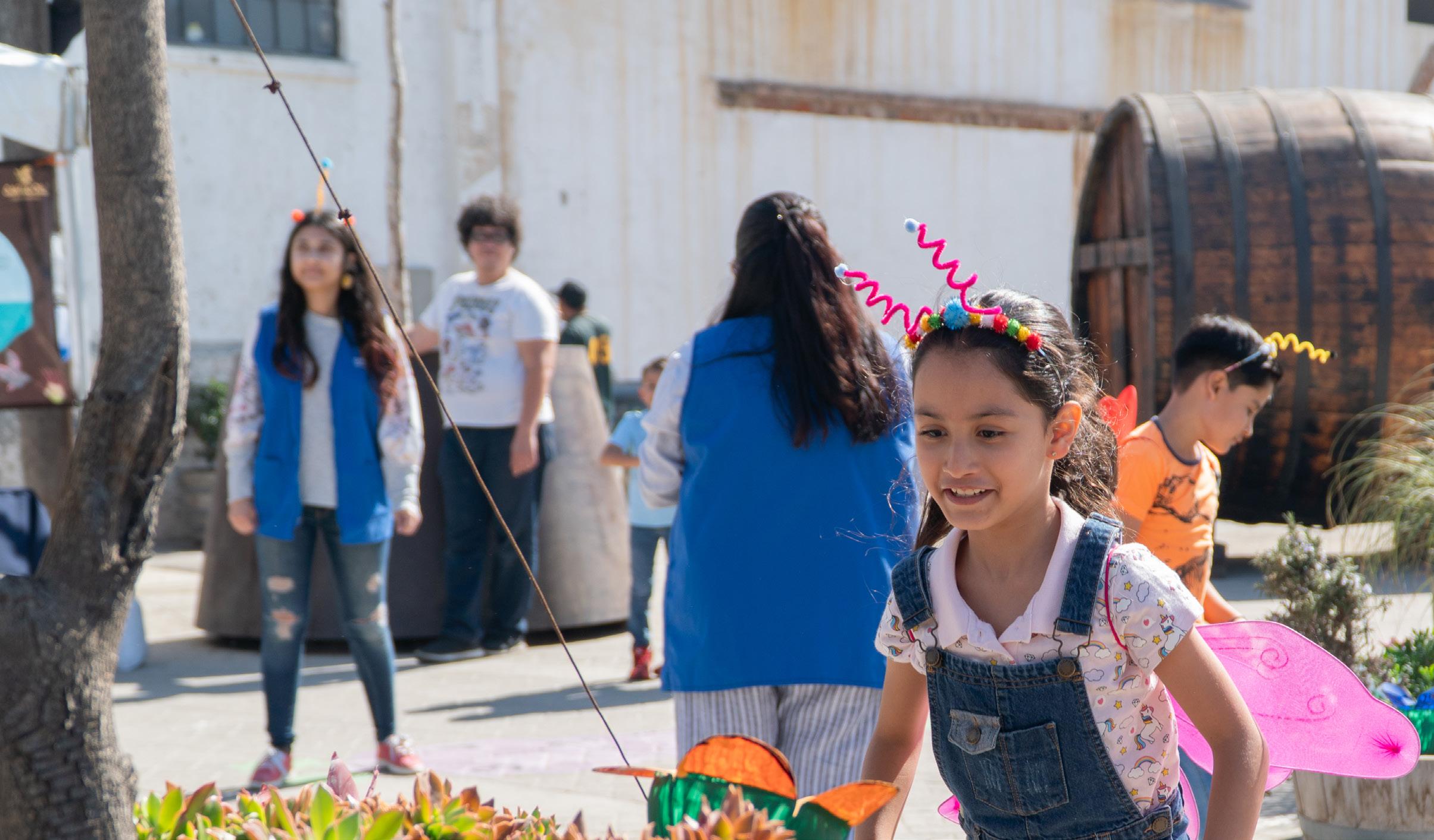 Niña disfrazada de polinizadora participa en el divertido taller.
