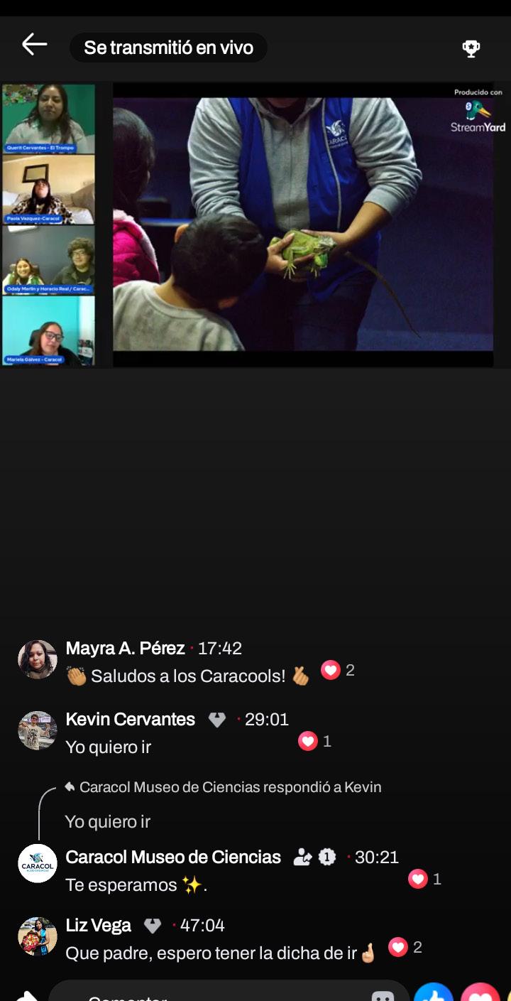 Algunos miembros del equipo de @ museocaracol fueron invitados a participar en la charla en línea “Museos y Centros de Ciencias” organizada por El Trompo Museo Interactivo Tijuana. Durante esta plática, transmitida en vivo a través de la cuenta de Facebook de @trompomuseo, se abordaron temas como la importancia de los museos, las experiencias que comparten los visitantes, y los retos a los que se enfrentan los colaboradores diariamente para mantener vivos estos espacios de conocimiento.