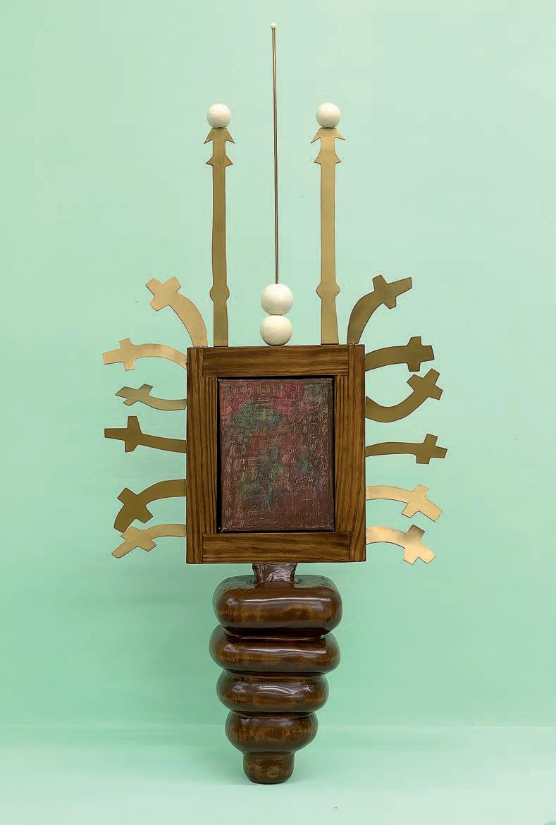 El beneno de la belleza is a sculpture that is a ‘rocket / tree / sound shower / crazy rattle