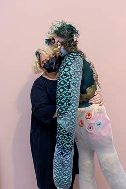 The work of Poblete explores the interrupted transformation of bodies and identities as embodied by mingling, mixture and exchange. Employing performative, sculptural and pictorial languages, the artist develops a system of symbols identified with bodily accessories such as clothing, jewellery, masks and objects. Through a repertory of bodily and ornamental forms seen in a set of bread masks laid out like archaeological pieces, she enacts an ongoing mutation of figures in a search for a forever shifting identity and to renew the symbolic power of ancestral