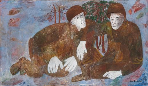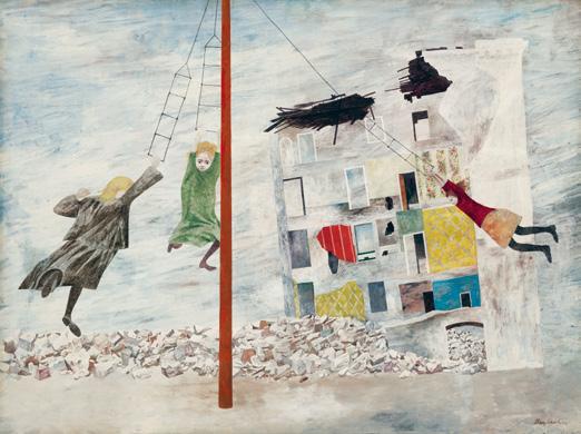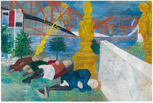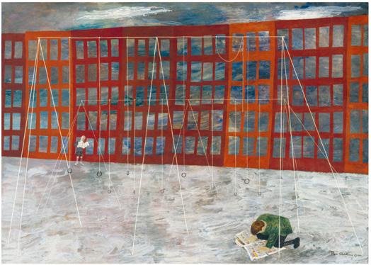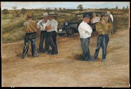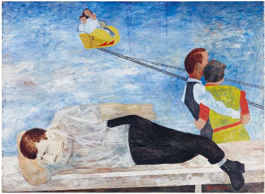 In parallel to these assorted projects, all subjected to the temporalities, limitations, and instrumental reasoning of public communication and political campaigns, Shahn produced a series of works that bear witness to the reality of working-class life during the Great Depression: prolonged periods of inactivity and waiting, stoic resistance, moments of hope interspersed with moments of tragedy, complicated presents, and uncertain futures. One example of his work in this regard is a collection of easel paintings grouped together under the generic title “Sunday Paintings”—a name that, according to John Fagg, sought to emphasize the difference between these works and his official commissions, as well as an aesthetic inspired by amateur or “popular” art. Here Shahn explored a style he termed “personal realism.”